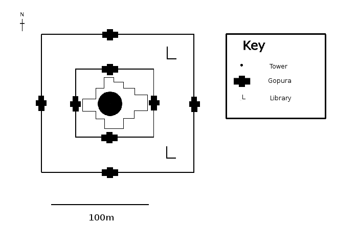 외부 회랑은 안뜰을 둘러싸고 있으며, 안뜰에는 두 개의 도서관(동쪽 입구의 양쪽에 하나씩)이 있다. 원래 안뜰에는 16개의 예배당이 있었지만, 이후 힌두교 복원주의자 자야바르만 8세에 의해 철거되었다.
