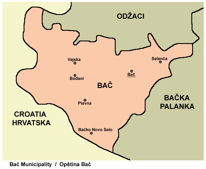 세르비아인이 다수인 정착지는 바치, 바치코 노보 셀로, 보자니이다. 슬로바키아인이 다수인 정착지는 셀렌차이며, 세르비아인이 상대적으로 다수인 민족 혼합 정착지는 바이스카와 플라브나이다.