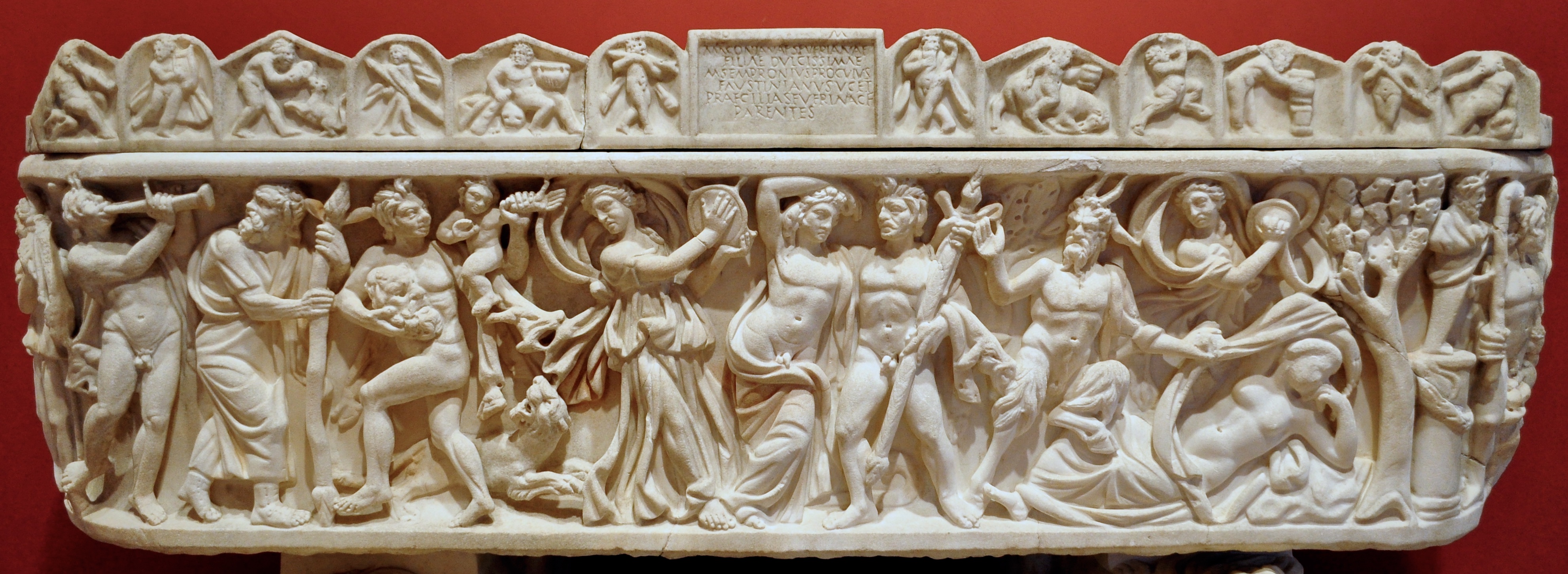 186년의 법은 ''바카날리아에 관한 원로원 결의''(Senatus consultum de Bacchanalibus)라는 비문 형태로 남아있다. 이 법은 바카날리아를 원로원, 즉 로마 폰티펙스의 통제 아래에 두었다.[2] 기존의 종교 단체와 대학은 해체되었다. 남녀 혼성 집회는 허용되었지만, 남자는 2명, 여자는 3명 이하로 제한되었고, 어떤 바카날리아 모임이라도 원로원의 사전 허가를 받아야 했다. 남자는 바쿠스 사제직을 맡는 것이 금지되었다.4. 3. 개혁 이후의 바카날리아