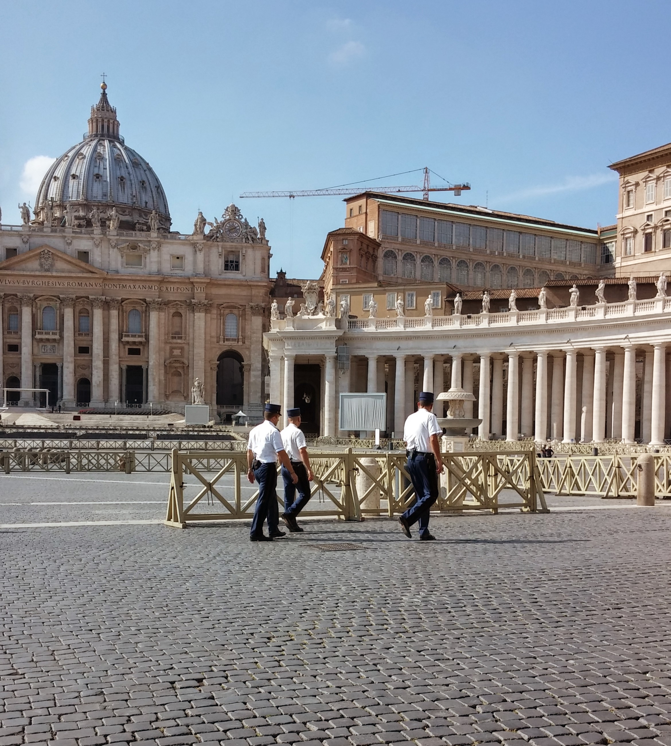 마찬가지로 이탈리아 카라비니에리(이탈리아 국가 헌병)와 국가 경찰(이탈리아 국가 민간 경찰)이 성 베드로 광장 (바티칸 영토) 안팎에서 군중을 통제하고 보호 임무를 수행하는 모습이 목격된다.[12]