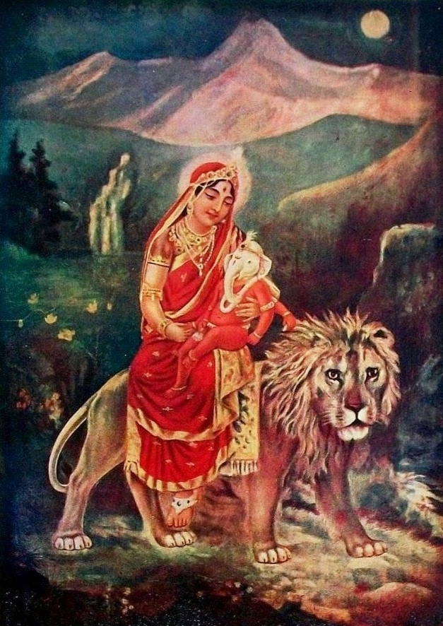사자 | 두르가, Skandamata|스칸다마타영어 (두르가의 화신), Katyayani|카티야야니영어 (두르가의 화신), 파르바티, 부다, Chandi|찬디카영어 (두르가의 다른 모습), Mariamman|마리암만영어 (날씨의 여신), Kamakhya|카마키야영어 (욕망을 구체화한 여신), Pratyangira|나라심히영어 (나라심하의 배우자), Kaushiki|카우시키영어 (파르바티에게서 태어난 전쟁 여신), Jagaddhatri|자가다트리영어 | |