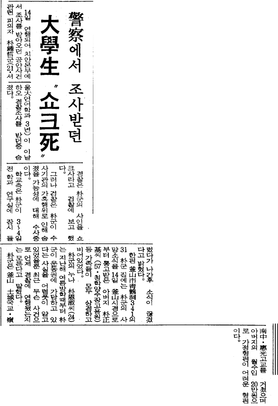 <박종철 고문치사 사건> 서울대학생 박종철군 가혹행위로 숨져