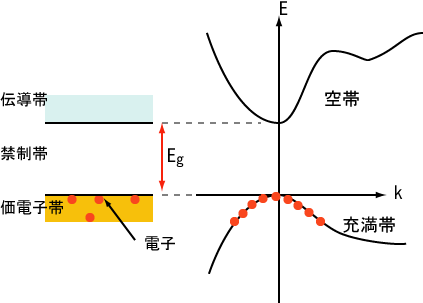 반도체는 절대 영도에서는 전자가 원자가띠에 꽉 차 있어서 전류가 흐르지 않는다. 하지만 온도가 올라가면 일부 전자가 에너지를 얻어 전도띠로 이동하여 전류를 흐르게 할 수 있다. 이때 전자가 빠져나간 자리는 양공(정공)이라고 불리는 빈자리가 생기는데, 이 양공도 전하를 운반하는 역할을 한다.
