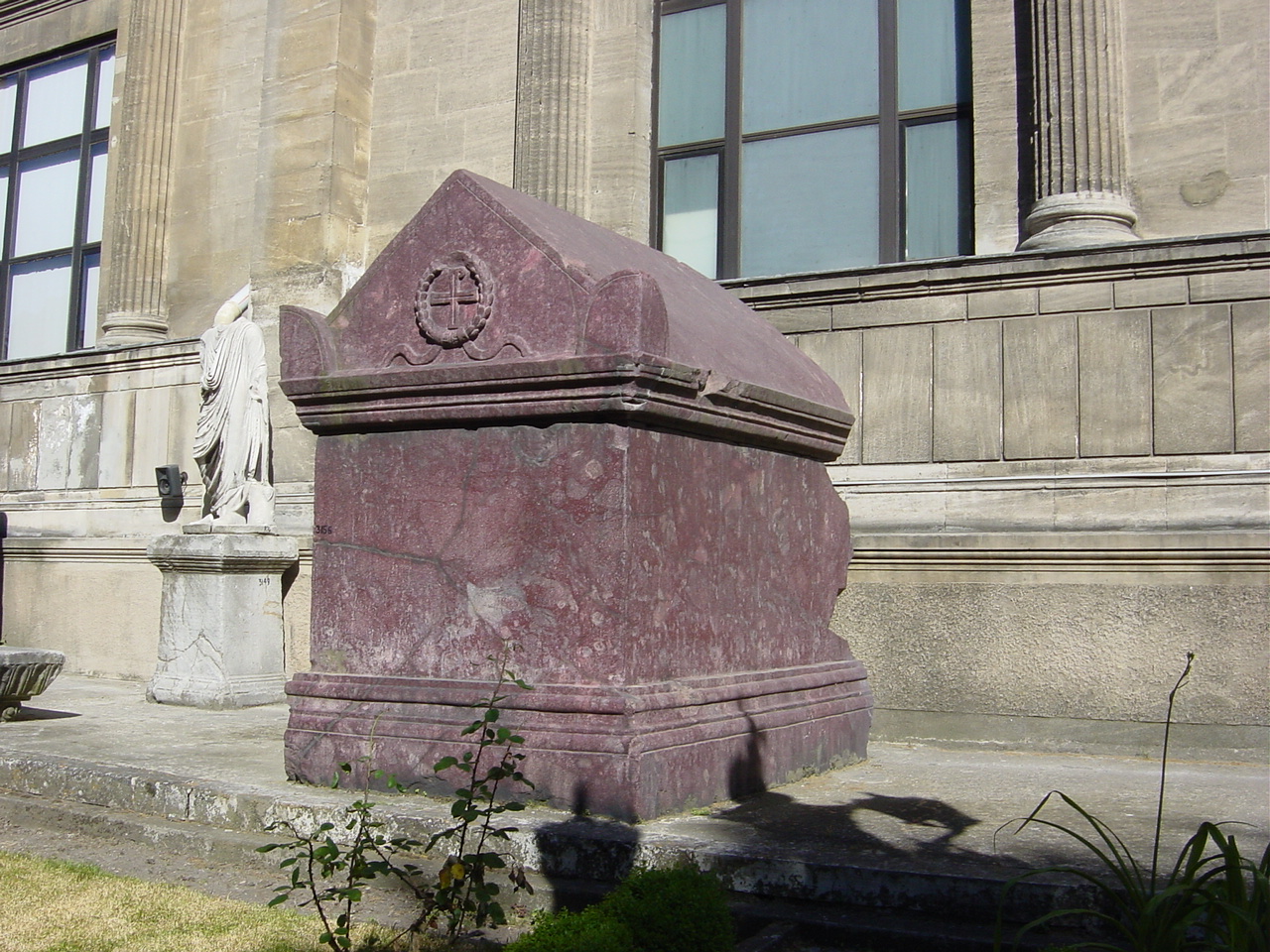 9개의 다른 황실 반암 사르코파구스는 오랫동안 콘스탄티노폴리스의 성 사도 교회에 보관되어 있었다. 콘스탄티누스 7세 포르피로게니투스는 그의 저서 ''의식에 관하여''(10세기 중반)에서 각각 콘스탄티누스 대제, 콘스탄티우스 2세, 율리아누스, 요비아누스, 테오도시우스 1세, 아르카디우스, 아일리아 에우독시아, 테오도시우스 2세, 그리고 마르키아누스의 것이라고 명시했다. 이 중 대부분은 후기 비잔틴 제국 황제, 제4차 십자군, 그리고 오스만 정복자의 약탈에도 불구하고 완전하거나 조각난 형태로 존재한다.[24] 현재 4개는 이스탄불 고고학 박물관 본관 정면을 장식하고 있으며,[31] 그중 둥근 모양을 가진 하나는 알렉산더 바실리에프가 율리아누스 황제의 것으로 추정하도록 했다. 바실리에프는 ''안크'' 또는 이집트 십자가를 새긴 석관을 포함한 9개의 황실 석관이 콘스탄티노폴리스로 운송되기 전에 이집트에서 조각되었을 것으로 추측한다.[24]