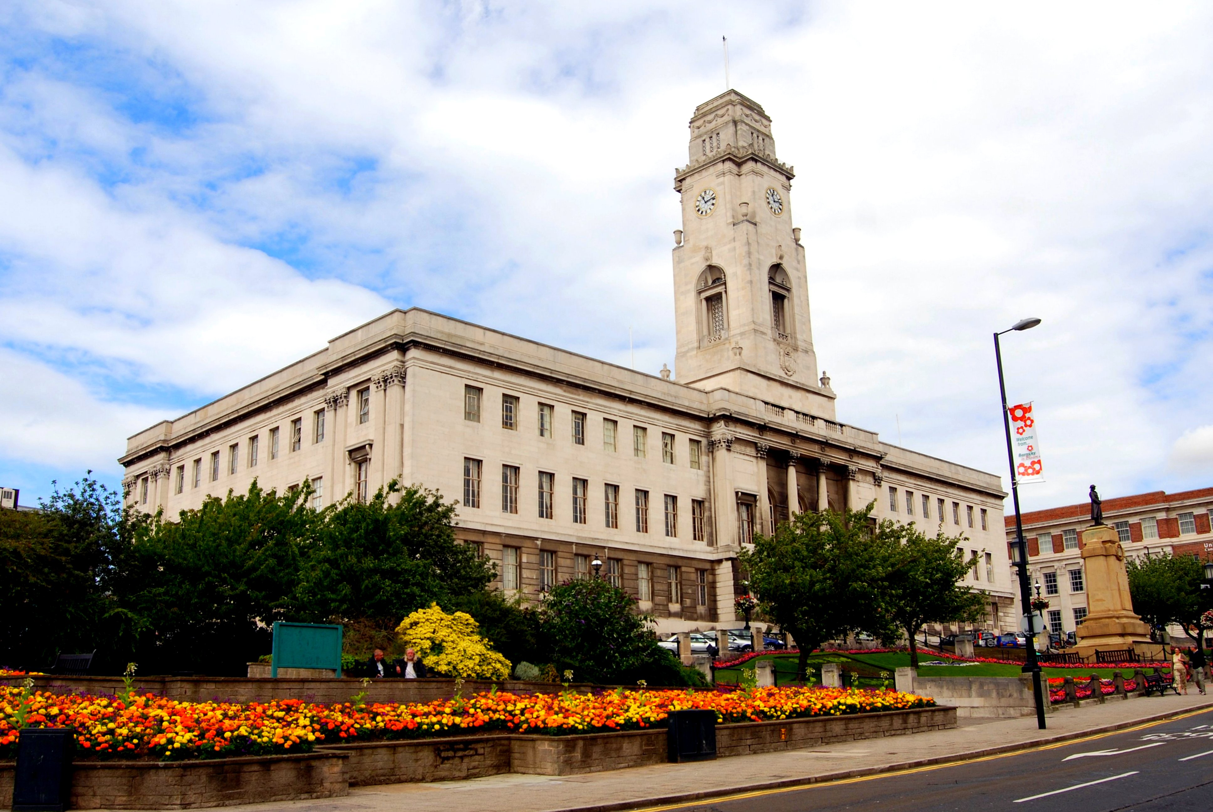 번즐리 시청은 정원 뒤편에 흰색 돌로 지어진 시계탑이 있는 건물로, 1933년 12월 14일에 개장했으며 번즐리 메트로폴리탄 자치구의 지방 정부 청사이다.[12]