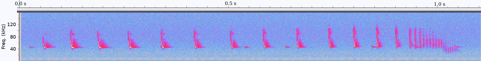 해당 오디오 파일: [[File:Chirps190918-22s.mp3|오디오 녹음: 먹이에 접근하는 작은관코박쥐, 20배 확장]]