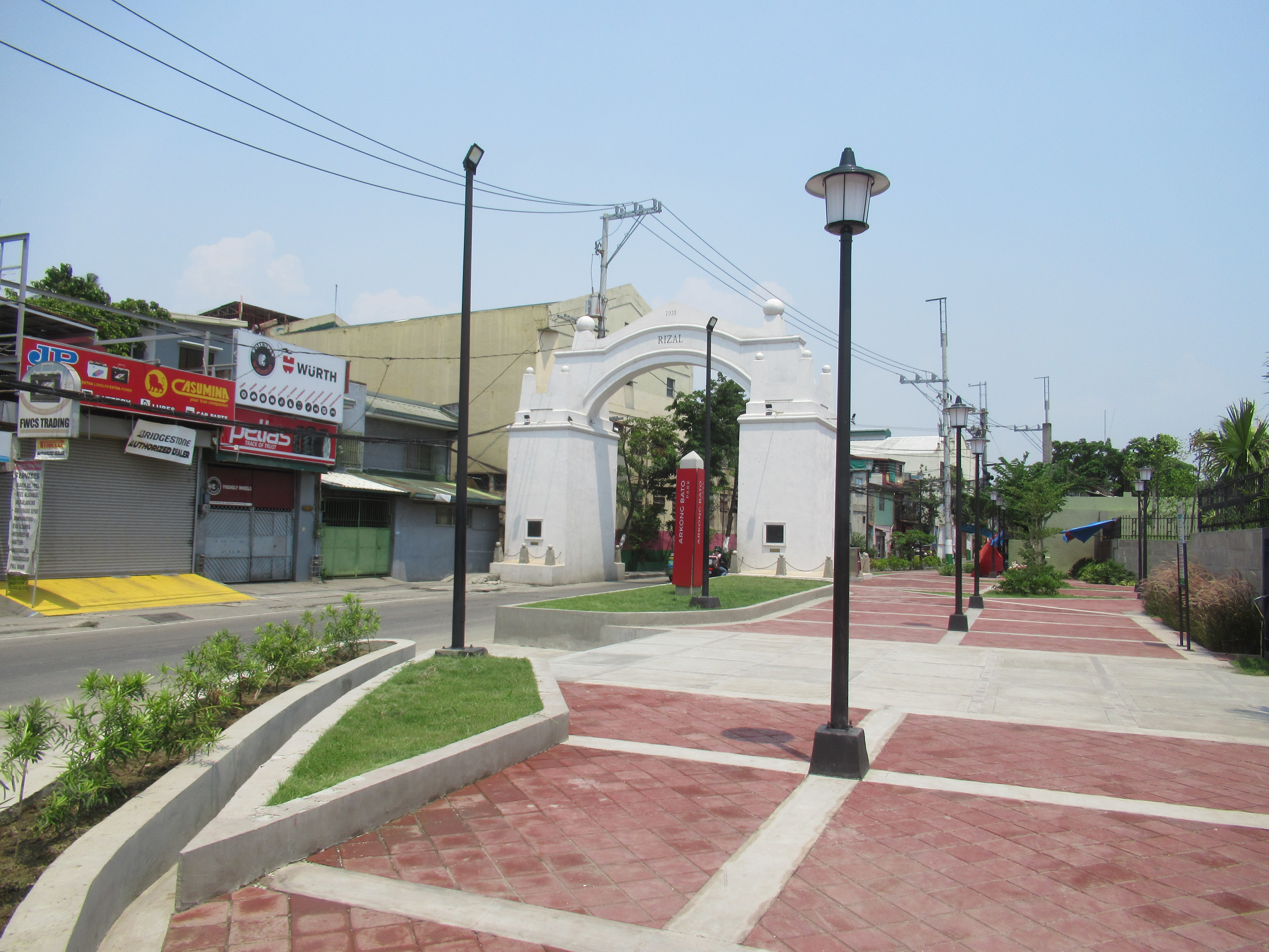 1910년, 칼레 레알(오늘날의 마르셀로 H. 델 필라르 거리)을 따라 말라본, 리잘과의 시 경계에 석조 아치가 건설되었다. 1928년에는 마닐라 노스 로드(고속도로 3)가 개통되어 새로운 관문이 되었다.