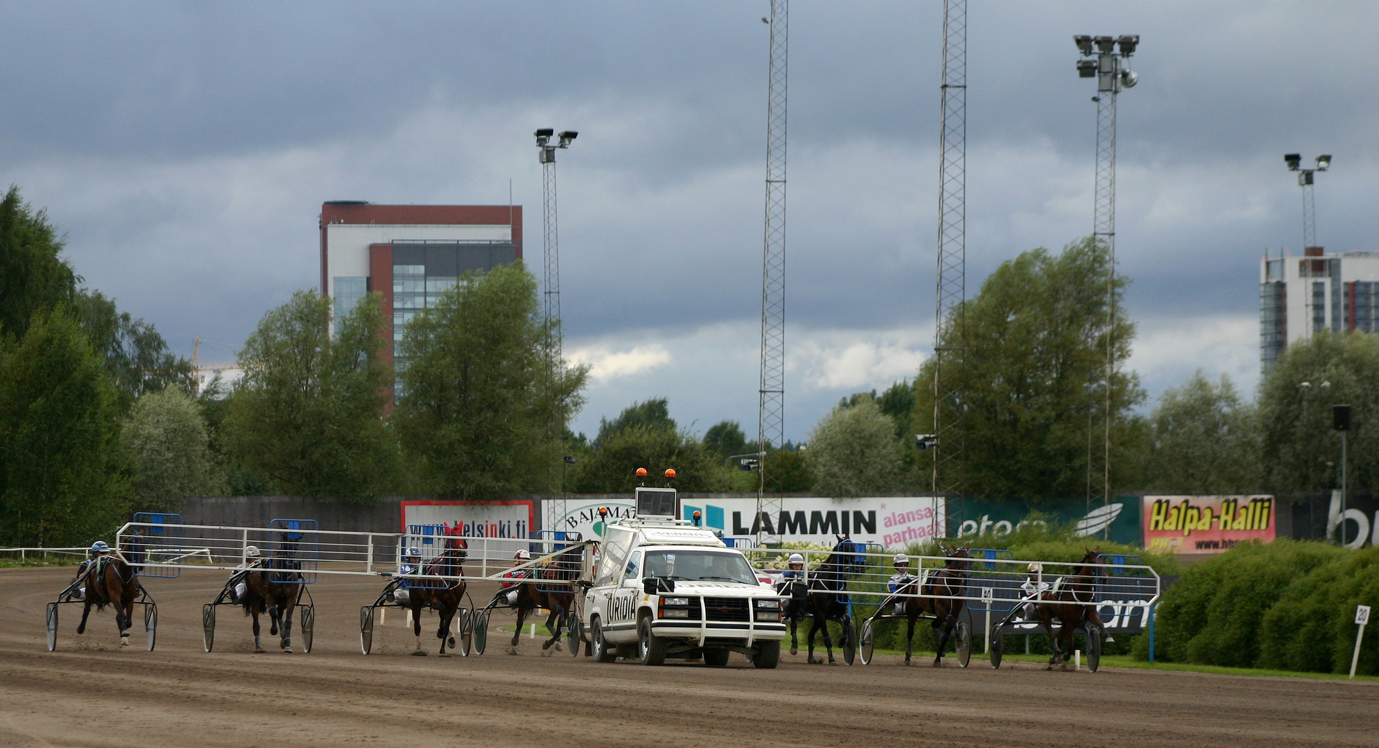 현대 대부분의 경마 경주는 "카 스타트" 또는 "오토 스타트"라고 불리는 전동 출발대 뒤에서 시작된다.[1] 이 장치는 차량 양쪽에 금속 "날개"와 유사한 경첩이 달린 게이트가 장착된 자동차 또는 픽업트럭으로 구성된다. 차량이 트랙 중앙으로 주행하면 날개가 펼쳐지고 말들이 그 뒤에 차례로 정렬된다. 게이트가 출발선에 도달하면 스타터가 날개를 뒤로 접어 차량 차체 쪽으로 접는다. 그런 다음 차량은 말에서 멀리 가속하여 경주자들이 진행하도록 놔둔다.[1]