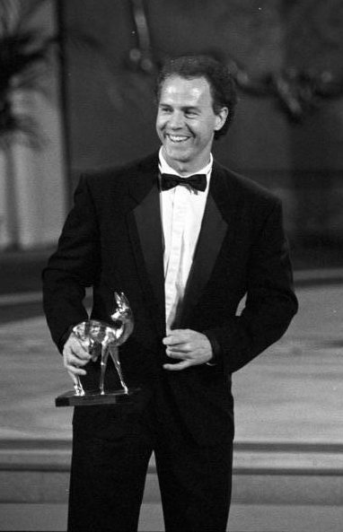 프란츠 베켄바우어가 밤비를 들고 있다, 라이프치히, 1990년 11월 27일