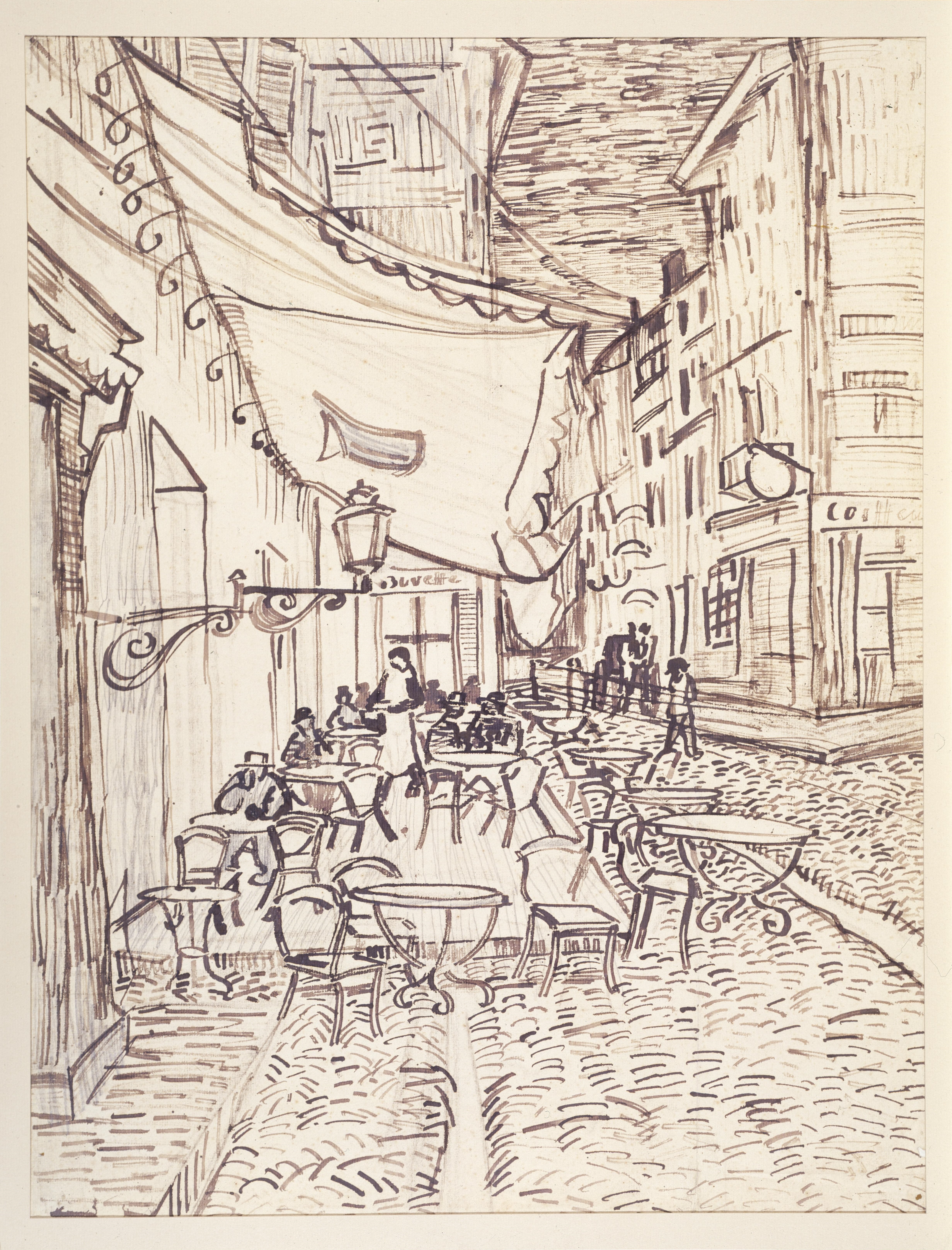 《밤의 카페 테라스》는 빈센트 반 고흐가 1888년 프랑스 아를에서 그린 유화 작품이다. 이 그림은 반 고흐가 동생에게 보낸 편지를 통해 제작 배경과 의도를 알 수 있는데, 그는 밤의 풍경을 검은색 없이 다채로운 색채로 표현하고자 했다. 반 고흐는 기 드 모파상의 소설 《벨아미》의 영향을 받았다고 언급했으며, 루이 앙케탱의 작품에서 영감을 얻었다는 주장도 있다. 또한, 이 작품을 최후의 만찬을 재해석한 것으로 보는 시각도 존재한다. 《밤의 카페 테라스》는 현재 프랑스 아를의 "카페 반 고흐"라는 이름으로 운영되는 카페의 모델이 되었으며, 영화, 텔레비전 프로그램, 광고 등 다양한 대중문화에 영향을 미쳤다.