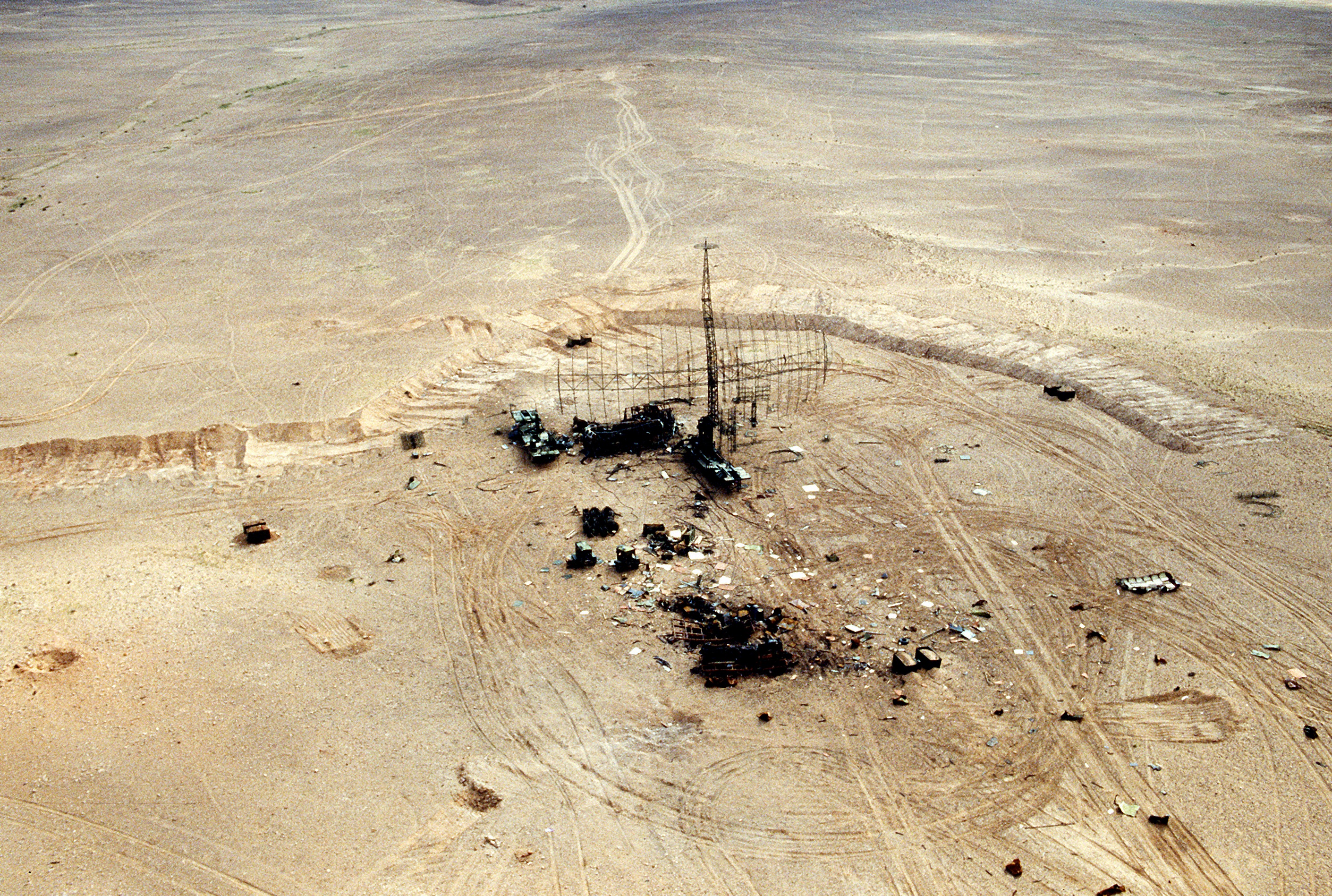 걸프전에서 연합군은 이라크의 통합 방공 시스템(IADS)에 대응하기 위해 대규모 방공망 제압(SEAD) 작전을 수행했다.[33][34] 이라크는 1990년까지 3,700여 기의 지대공 미사일(SAM), 105개의 발사대, 7,000여 문의 대공포, 수백 개의 조기 경보 레이더 등으로 강력한 방공망을 구축했다.[33][34] 이라크 공군은 세계 6위 규모로, 수백 대의 요격기를 보유하고 있었다.[33] 이라크 IADS의 핵심은 프랑스 계약업체가 건설한 자동화된 지휘 통제 시스템 'Kari'였다.[33][34] Kari는 국가 방공 작전 센터(ADOC)와 4개의 구역 작전 센터(SOC)를 연결하여 IADS 전체를 통제했다.[33] 각 SOC는 2~5개의 요격 작전 센터(IOC)를 지휘하며 지역 레이더 시스템과 연동되었다.[33] 바그다드는 하노이보다 강력한 방공망으로 보호받았다.[33][34]