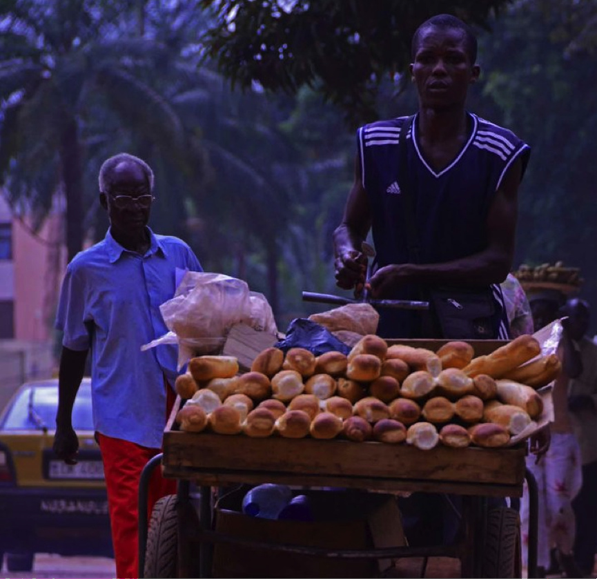 강과 가까운 시내 중심가에는 보카사를 기리는 거대한 개선문과 대통령 궁, 중앙 시장이 있다. 북쪽으로 더 멀리 떨어진 주거 지역의 중심부에는 가장 큰 시장과 대부분의 밤문화가 있다. 교외에 거주하는 많은 사람들은 진흙 벽돌로 지어지고 초가 지붕을 얹은 코드로(Kodros)로 알려진 집에 산다.