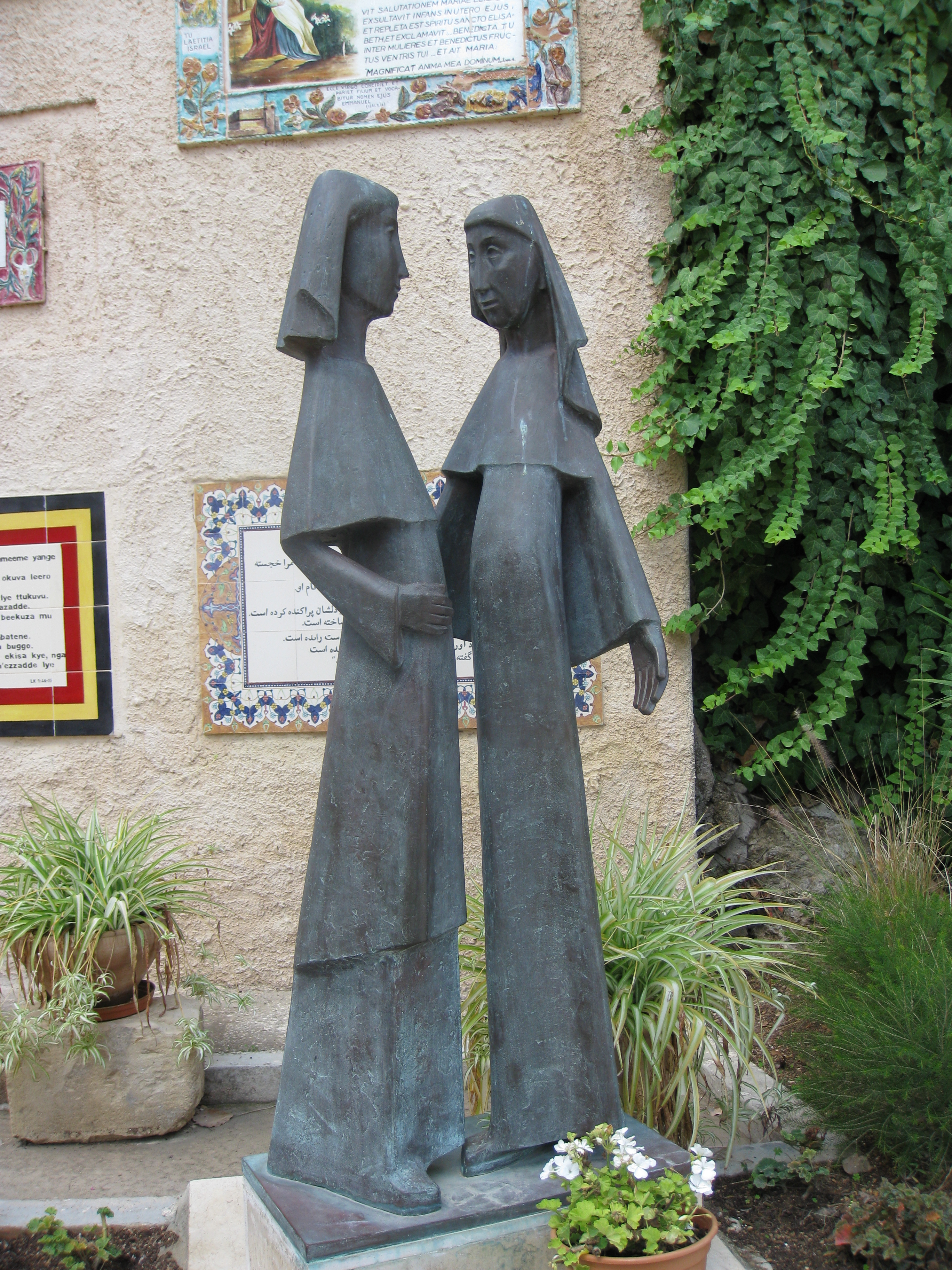 이 이야기에서 마리아는 즈카르야의 아내이자 사촌인 엘리사벳을 방문했다. 당시 두 사람 모두 임신 중이었는데, 마리아는 예수를, 엘리사벳은 세례자 요한을 약 6개월 먼저 임신한 상태였다(루카 복음서 1:36). 마리아는 수태 고지 직후 나사렛을 떠나 "유다 산악 지방에 있는 한 고을"(루카 복음서 1:39)로 가서 사촌 엘리사벳을 돌보았다(루카 복음서 1:36).