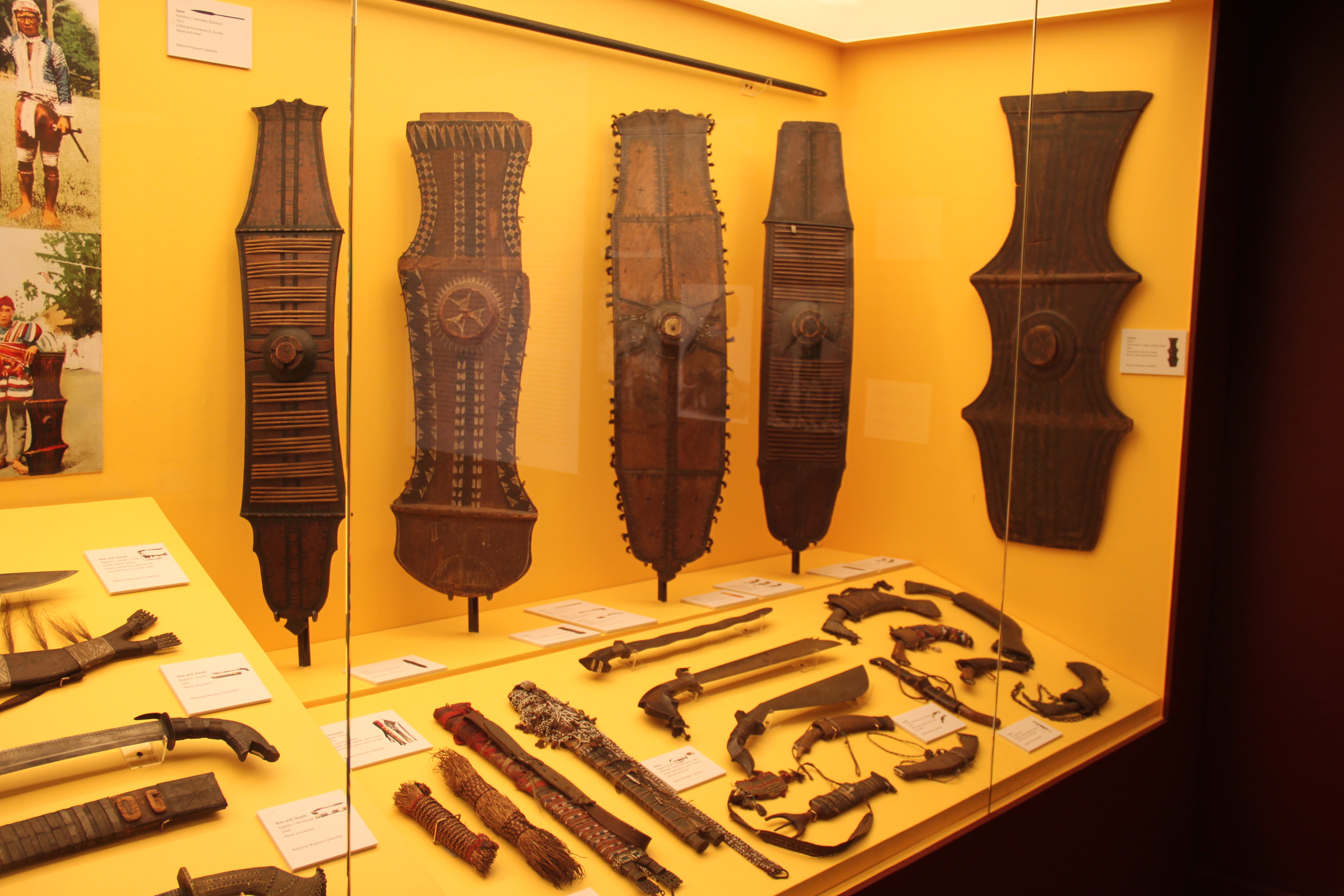 - 19세기, 총기 접근성이 낮은 비산업 문화권에서는 여전히 전쟁 방패를 사용했다. 줄루 전사들은 나무 등뼈로 지탱되는 단일 소가죽으로 만든 이쉴랑구라고 불리는 크고 가벼운 방패를 휴대했다. 이것은 짧은 창(이클와) 및/또는 곤봉과 함께 사용되었다. 다른 아프리카 방패로는 카메룬의 글라그와 또는 콩고 공화국의 응구바가 있다.