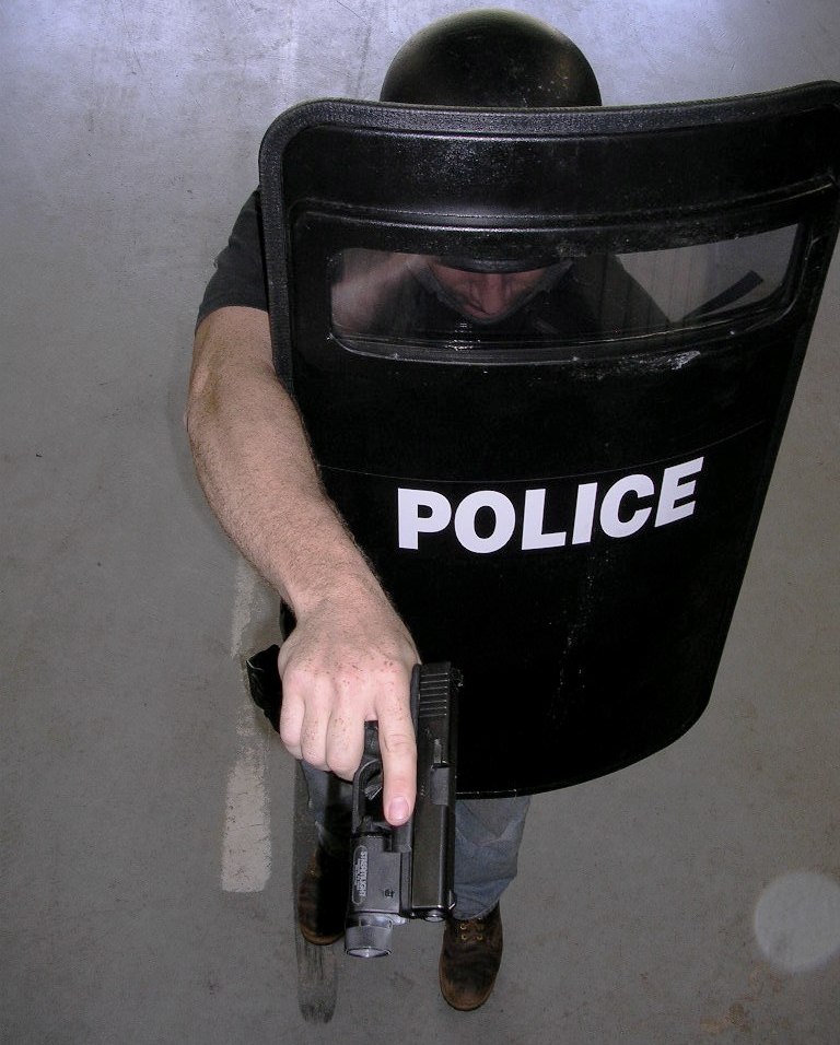 - 방탄 방패: 총탄을 막기 위해 케블라와 같은 고급 합성 섬유로 만든다. 주로 SWAT 같은 특수 기동대가 총격전이나 실내 진입 시 사용한다.