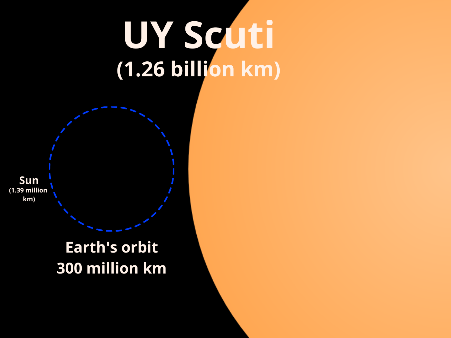 태양과 비교한 방패자리 UY의 크기.