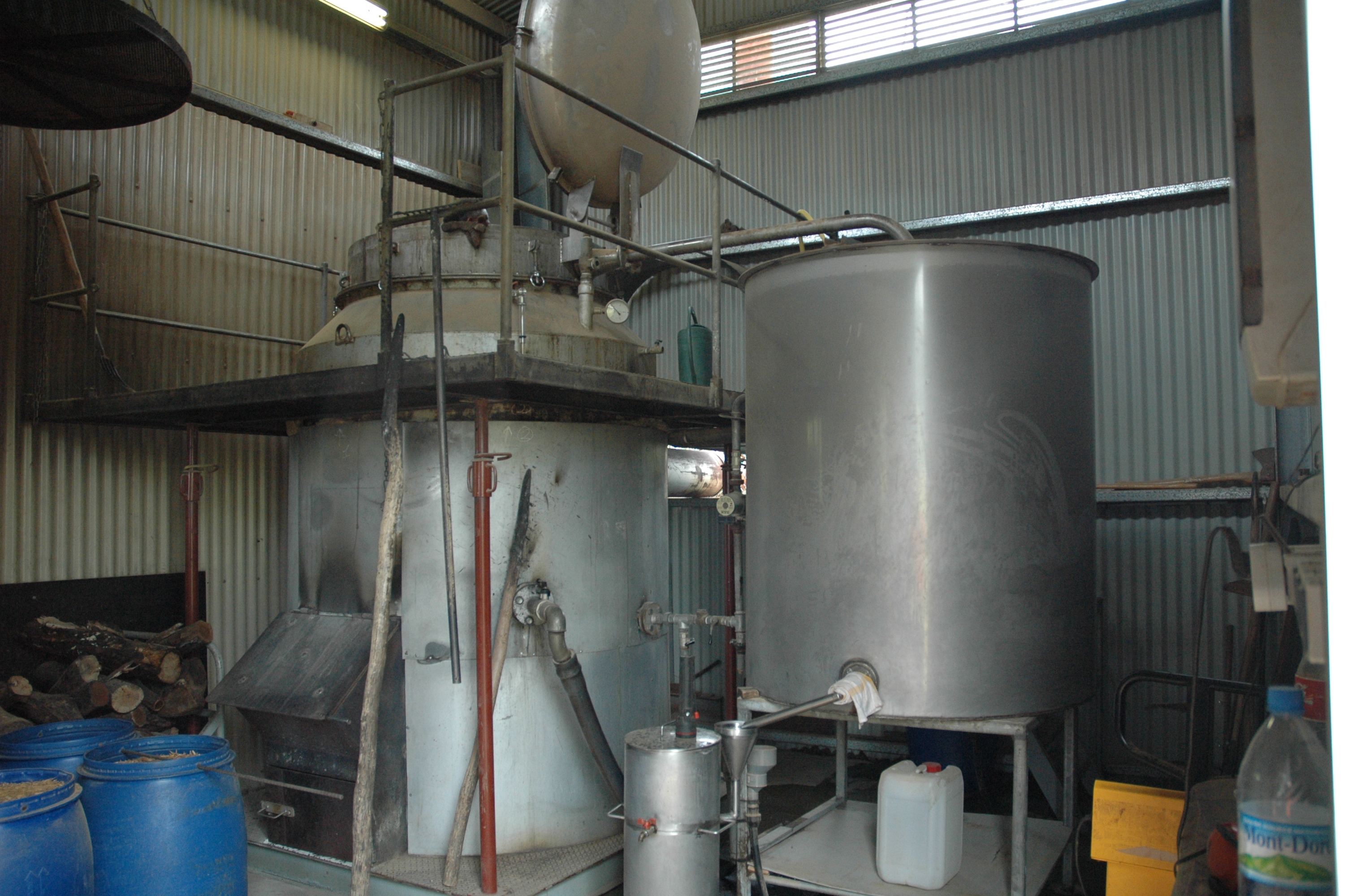 - '''수확산법''': 수증기 증류법과 유사하나 냉각수를 절약하기 위해 증류기 상부에 분출구가 있고 하부에 응축기로의 배출구가 있다.[88]
