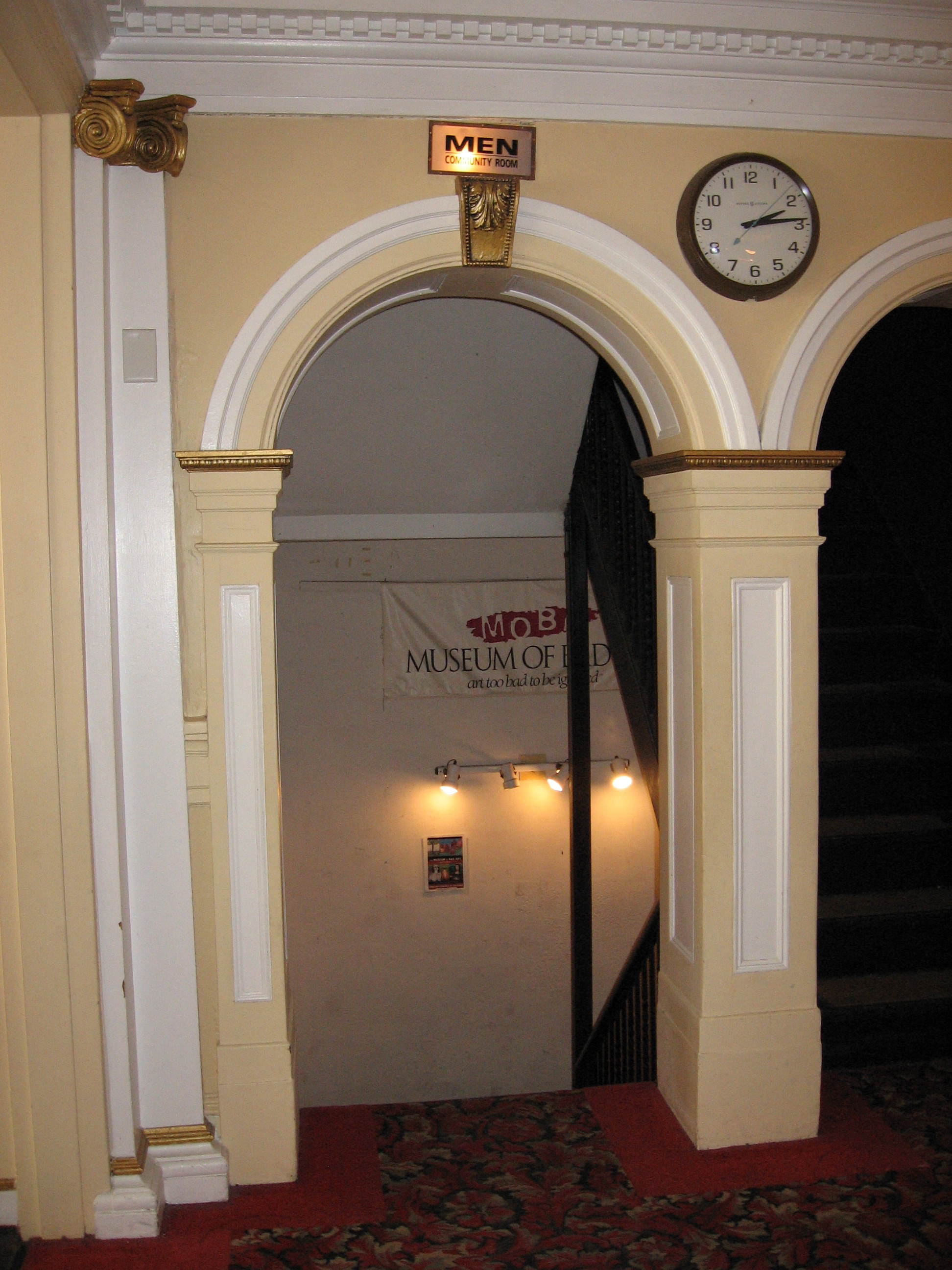 배드 아트 미술관(MOBA)은 1995년에 전시 공간을 데덤 커뮤니티 극장의 지하로 옮겼다.[13] 이 건물은 2004년에 "헐값"으로 묘사될 정도로 낡은 외관을 가지고 있었다.[13] 미술관은 고정된 운영 시간이 없이 위층 극장이 열려 있는 동안만 운영되었다.[14] 컬렉션은 "남자 화장실 바로 바깥"에 배치되어[15] 소리와 냄새가 컬렉션으로 전달되었으며, 화장실의 끊임없는 물 내림은 "균일한 습도를 유지하는 데 도움이 된다"고 한다.[16]MOBA는 초창기에 순회 전시회를 개최하기도 했다. "예술이 창밖으로 나간다 - 숲 속의 갤러리"에서는 작품이 케이프 코드 숲의 나무에 걸렸고, 분위기를 위해 나쁜 음악이 연주되었다. "배드 아트에 휩싸이다" 전시회에서는 18점의 작품이 수축 포장으로 덮여 "세계 최초의 드라이브 스루 미술관이자 세차장"이 되었다.[6] 2001년 "벌거벗은 - 누드뿐" 전시회에서는 MOBA의 모든 누드화를 지역 스파에 걸어 놓았다.