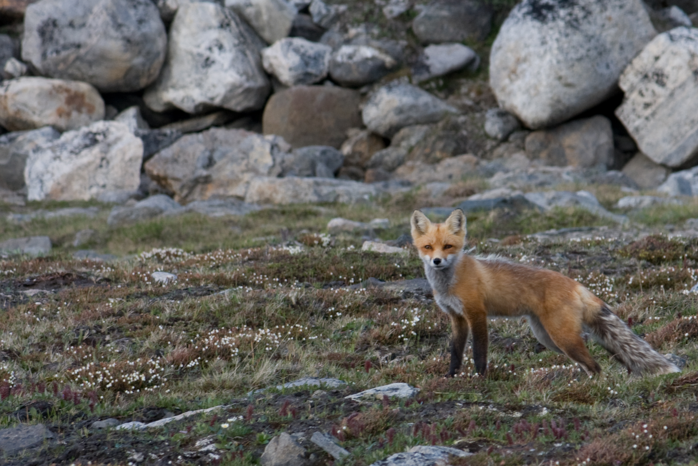붉은여우는 겨울 날씨가 가장 혹독한 곳에서 벗어나 배핀섬의 최남단 지역에서 주로 발견되지만, 일부 개체는 다른 곳에서 먹이를 구하고 탐험할 수 있다. 북극여우는 일반적으로 북극곰이 물개를 찾기 위해 육지 가까이의 결빙으로 모험하는 곳에서 발견된다. 북극여우는 청소동물이며 종종 북극곰을 따라다니며 남은 것을 얻는다. 또한 오리, 거위, 흰꼬리, 갈매기, 해안 조류, 심지어 눈올빼미와 같은 지상 둥지 새와 그 알과 새끼를 가끔씩 사냥하는 것으로 알려져 있다. 배핀섬에서 북극여우는 때때로 이누이트에 의해 포획되지만 더 이상 활발한 모피 무역은 없다.[73]