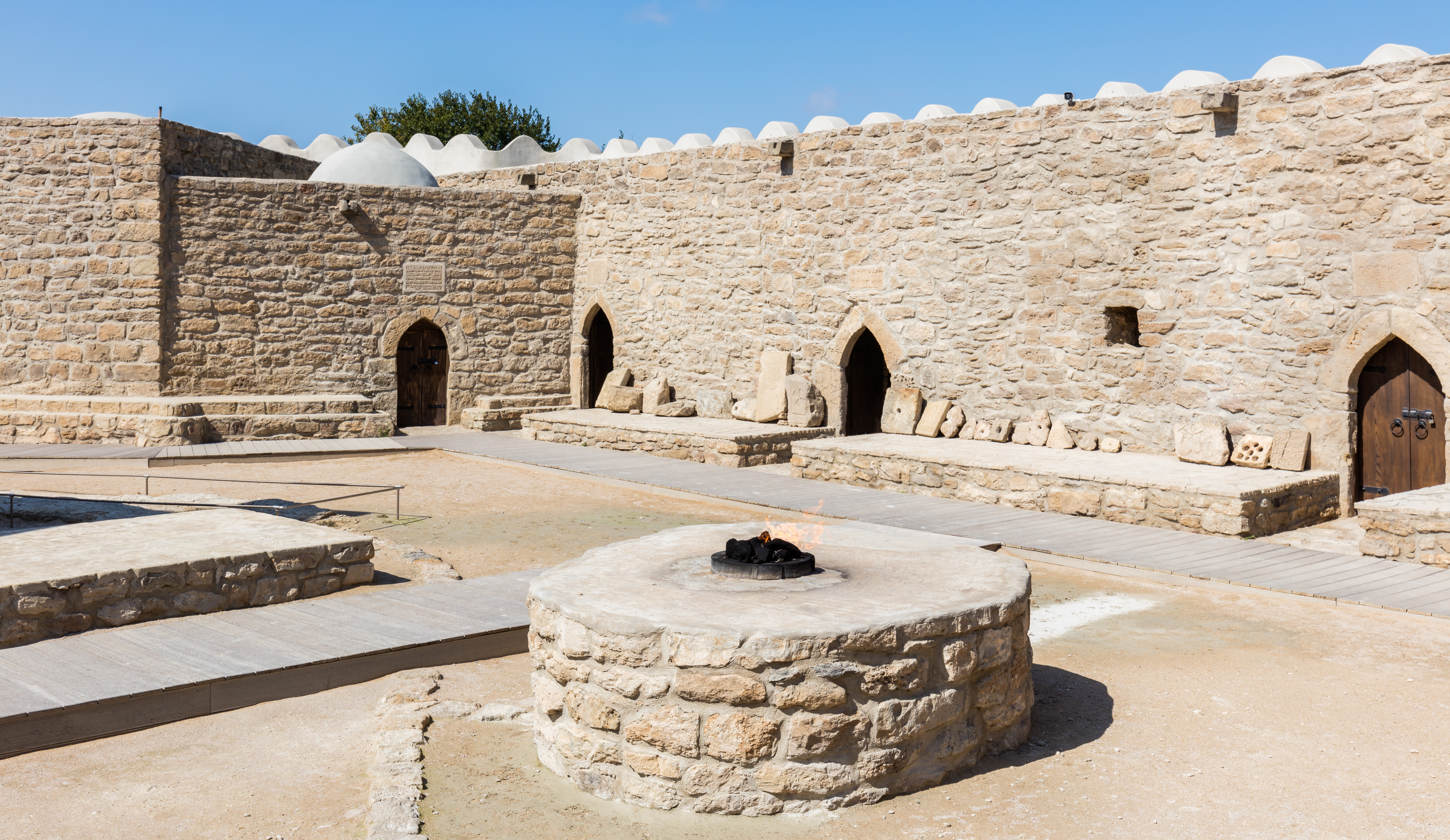 가장 오래된 불의 사원 유적은 시스탄의 하문 호수 근처 호자산에서 발견되었으며, 기원전 3~4세기로 추정된다.[9] 이 사원은 파르티아 제국 시대에 재건되었고, 사산 제국 시대에 확장되었다. 사산 시대 불의 사원의 특징은 불 제단이 있던 돔형 성소였다.[10] 이 성소는 항상 각 모서리에 기둥이 있는 정사각형 평면으로 되어 있으며, 기둥은 돔(''곰바드'')을 지지했다. 아베스타에 대한 ''젠드'' 주석의 고고학적 유물과 문헌 증거에 따르면 성소는 사방에 통로가 둘러싸여 있었다.[10]