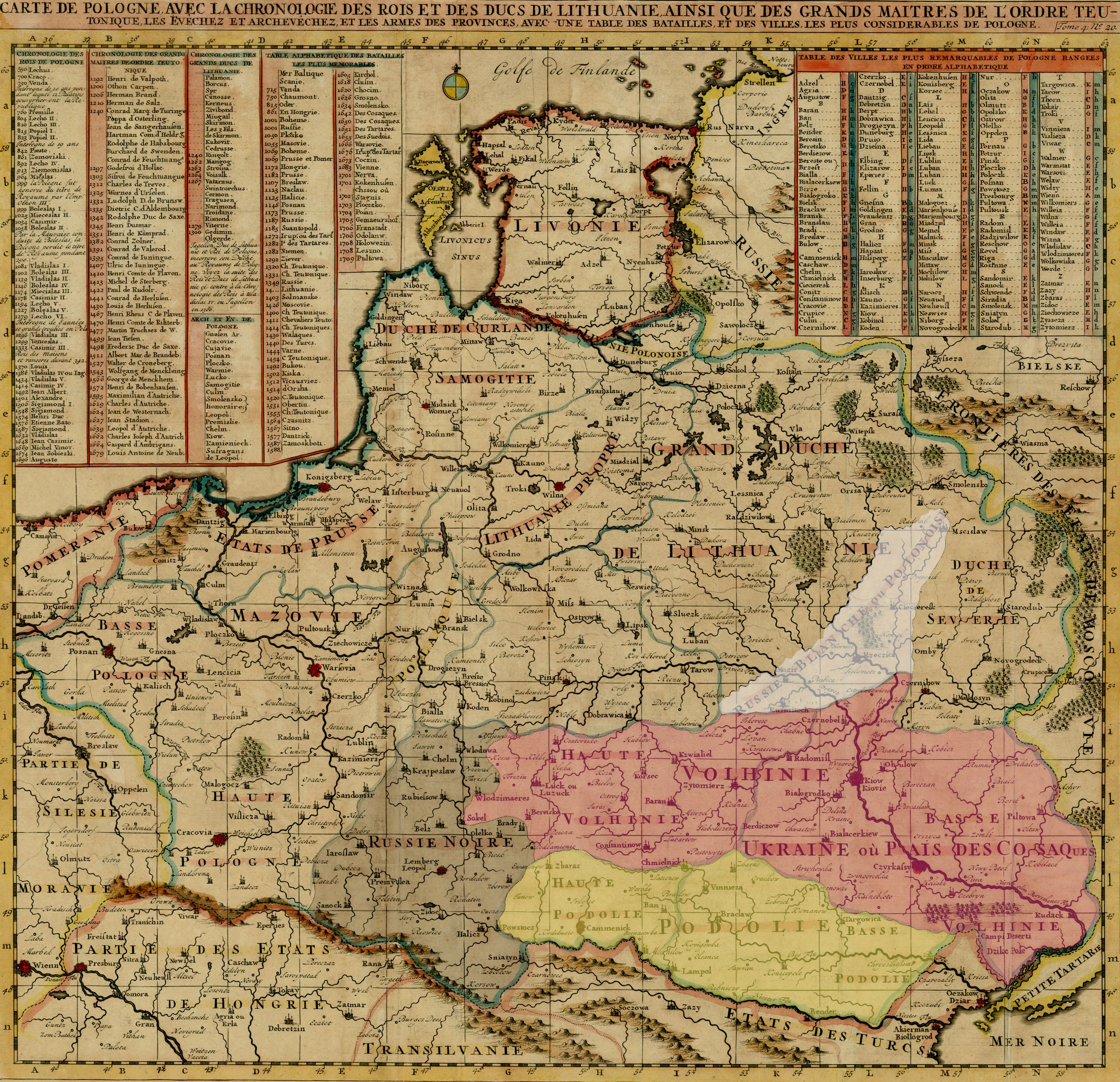 프랑스 지도 제작자 앙리 샤텔랭의 1712년 지도에서 "Russie noire"(흑 루테니아)는 적 루테니아로 알려진 동부 갈리시아 (오늘날 서부 우크라이나) 지역에 위치해 있다.