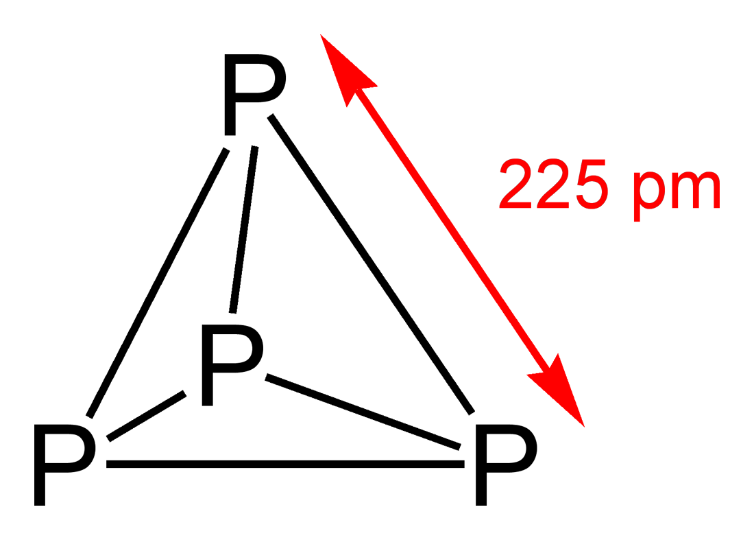 백린은 인 원자 4개로 이루어진 분자로, 4개의 원자가 정사면체 구조를 이루어 고리 긴장을 발생시키기 때문에 불안정하다.[4]
