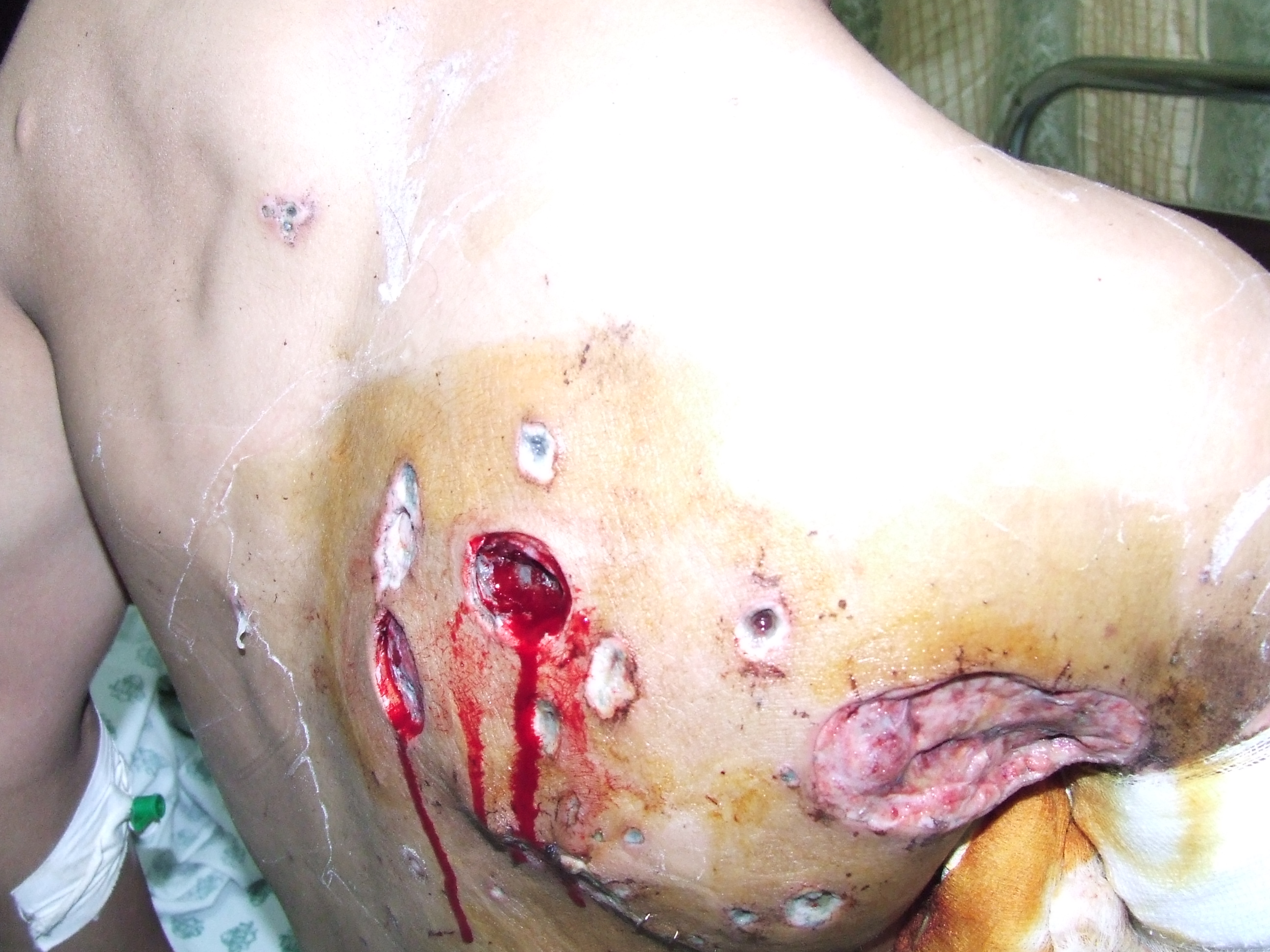 백린탄의 최초 폭발로 흩뜨려진 백열성 입자는 넓고 깊게 제2도 및 제3도 화상을 일으킨다. 백린은 피부에 달라붙는 성질이 있어 이러한 심각한 부상을 유발한다.[27] 백린 화상은 화상 부위를 통해 백린이 흡수되었을 경우 , 심장, 신장이 손상되고, 다발성 장기 부전이 발생할 수도 있기 때문에 다른 화상보다 훨씬 사망 위험이 크다.[27] 또한 백린은 산소를 차단시키거나 모두 연소되기 전까지 계속 타오르기 때문에 특히 위험하다.