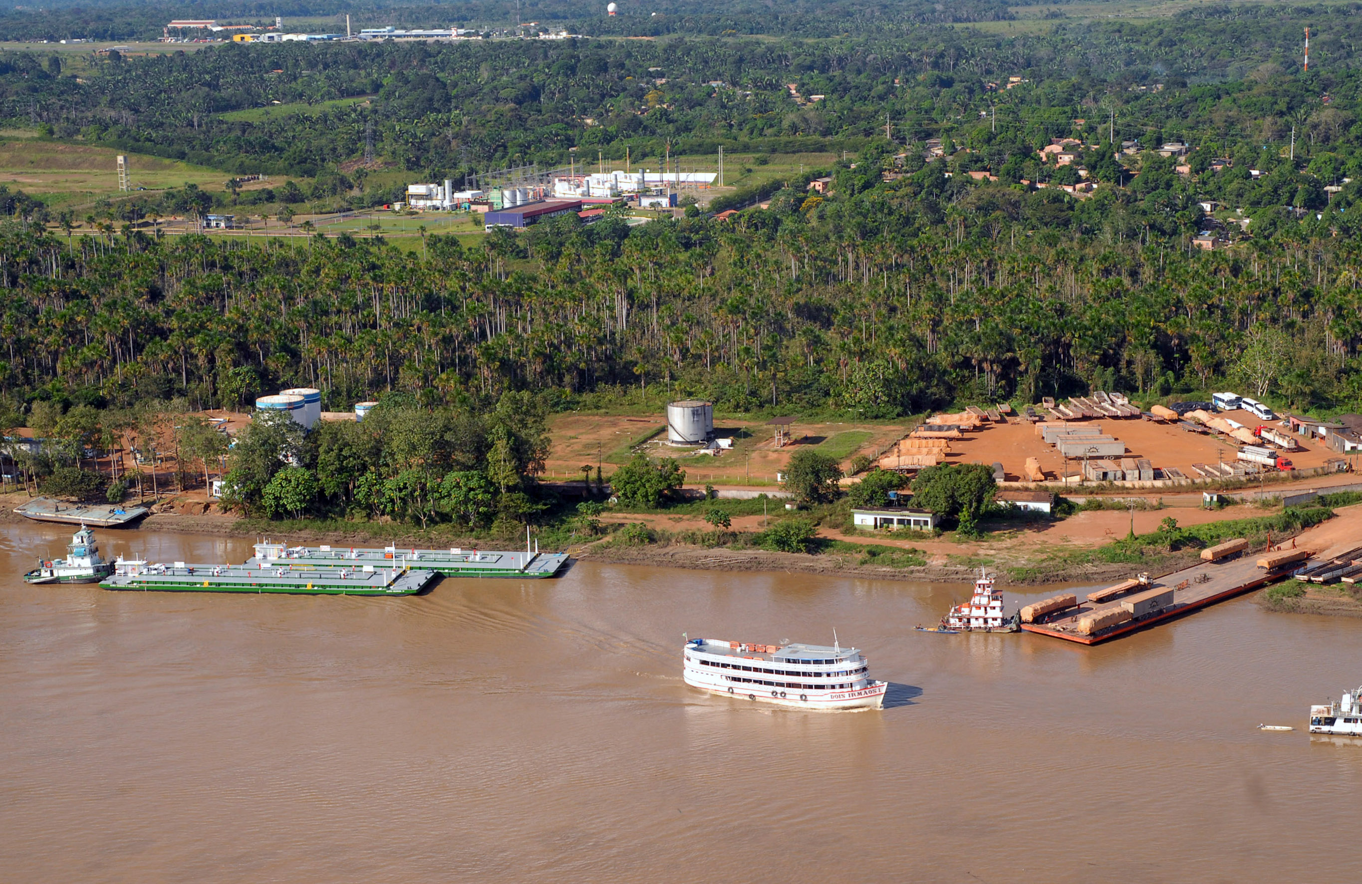 브라질 포르투벨류를 지나 흐르는 마데이라강으로, 전형적인 백수하천의 탁한 흙탕물을 보여준다.