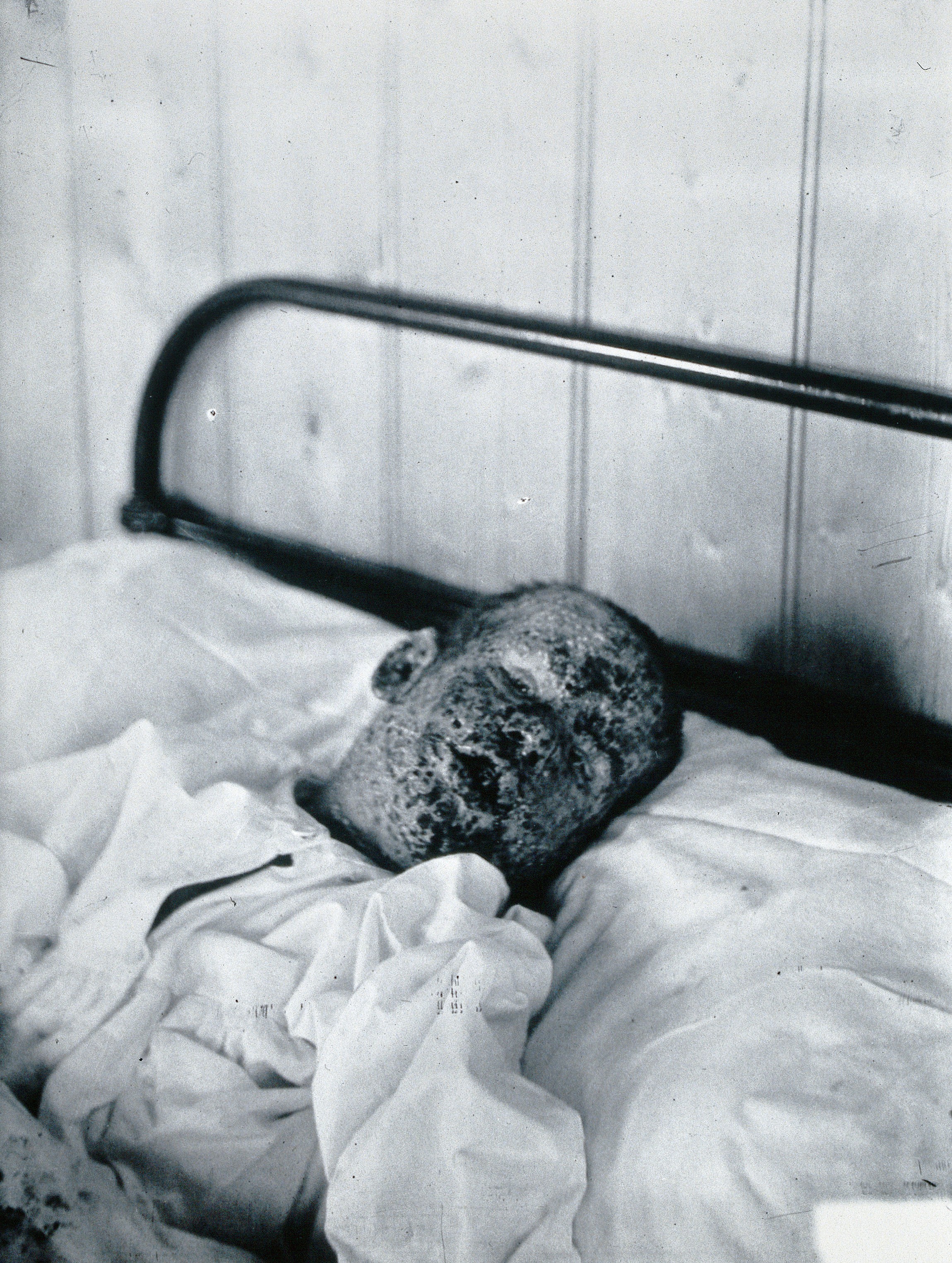 두창에 걸린 6세 헨리 위클린. 의무적인 백신 접종으로 두창은 전 세계적으로 근절되었다.