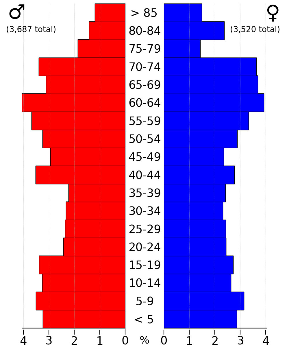 인종 구성은 백인 98.62%, 흑인 0.06%, 아메리카 원주민 0.18%, 아시아인 0.28%, 태평양 제도 출신 0.06%, 기타 인종 0.15%, 혼혈 0.64%였다.[25] 히스패닉 또는 라틴계는 인구의 0.77%였다.[25]