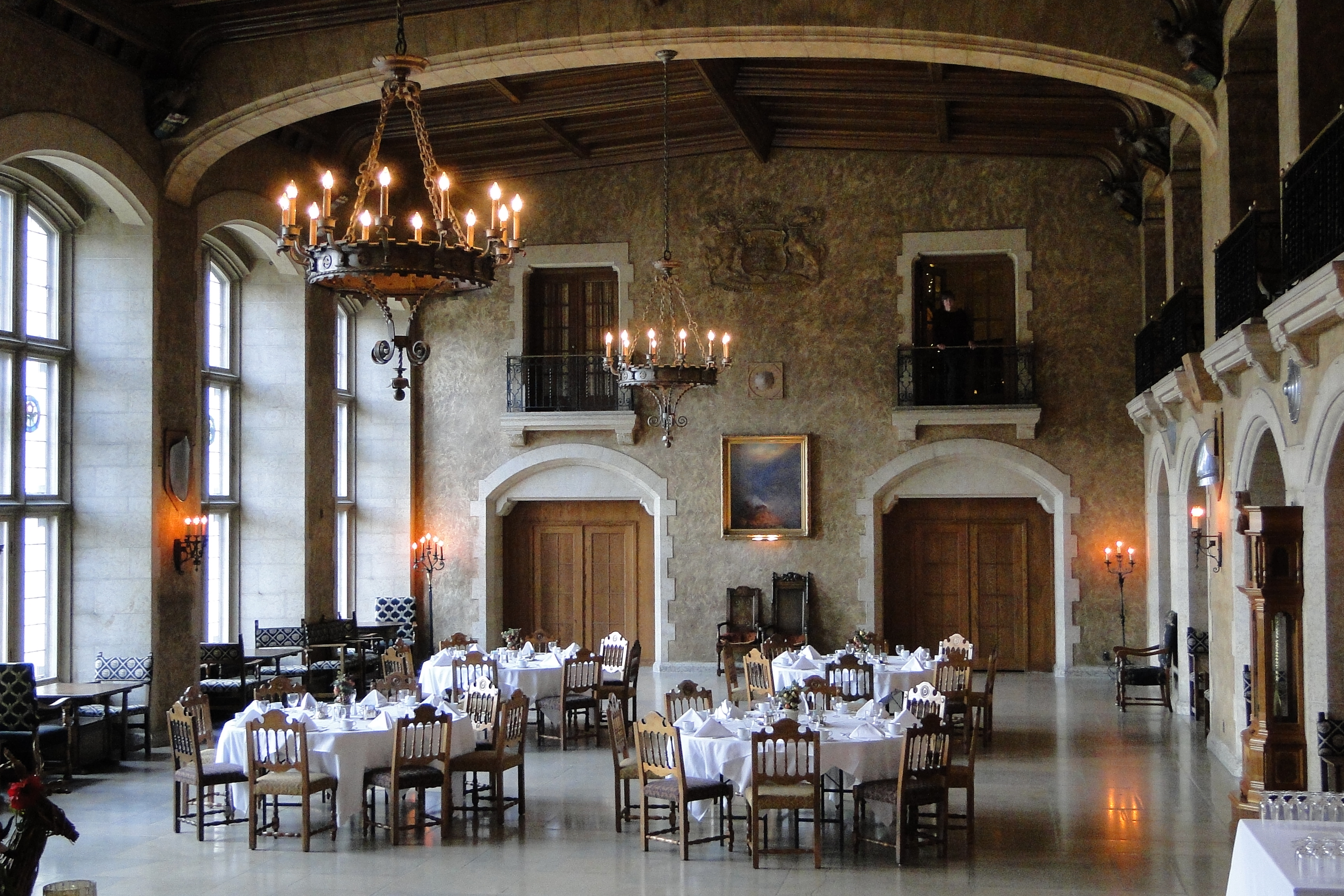 호텔 부지 내에는 여러 레스토랑과 음식 서비스 시설이 있다. 2017년 12월 기준으로 12개의 레스토랑이 운영 중이며,[4] 1888 찹 하우스, 발트하우스, 런들 바, 카스텔로 등이 있다. 카스텔로에서는 호텔의 애프터눈 티를 제공하며,[4] 현지 식료품점인 Stock Food & Drinks도 이용할 수 있다.[4]