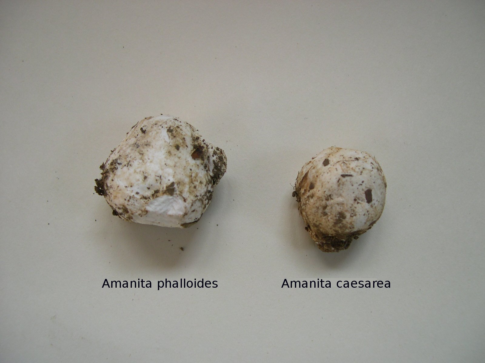 미성숙한 ''광대버섯''의 두 가지 예시, 하나는 치명적이고 하나는 식용