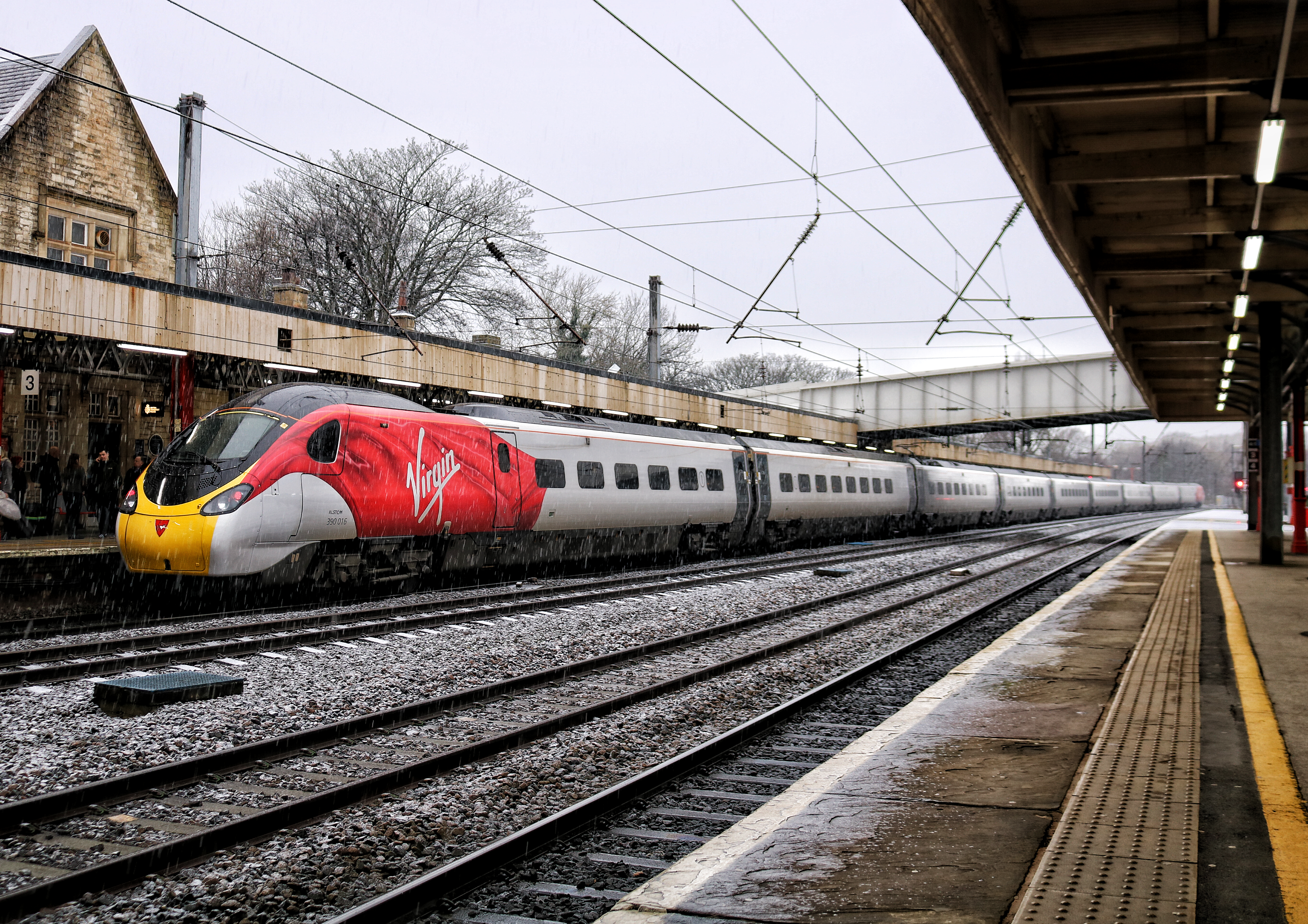 어빙턴에 정차한 버진 펜돌리노 390045 열차