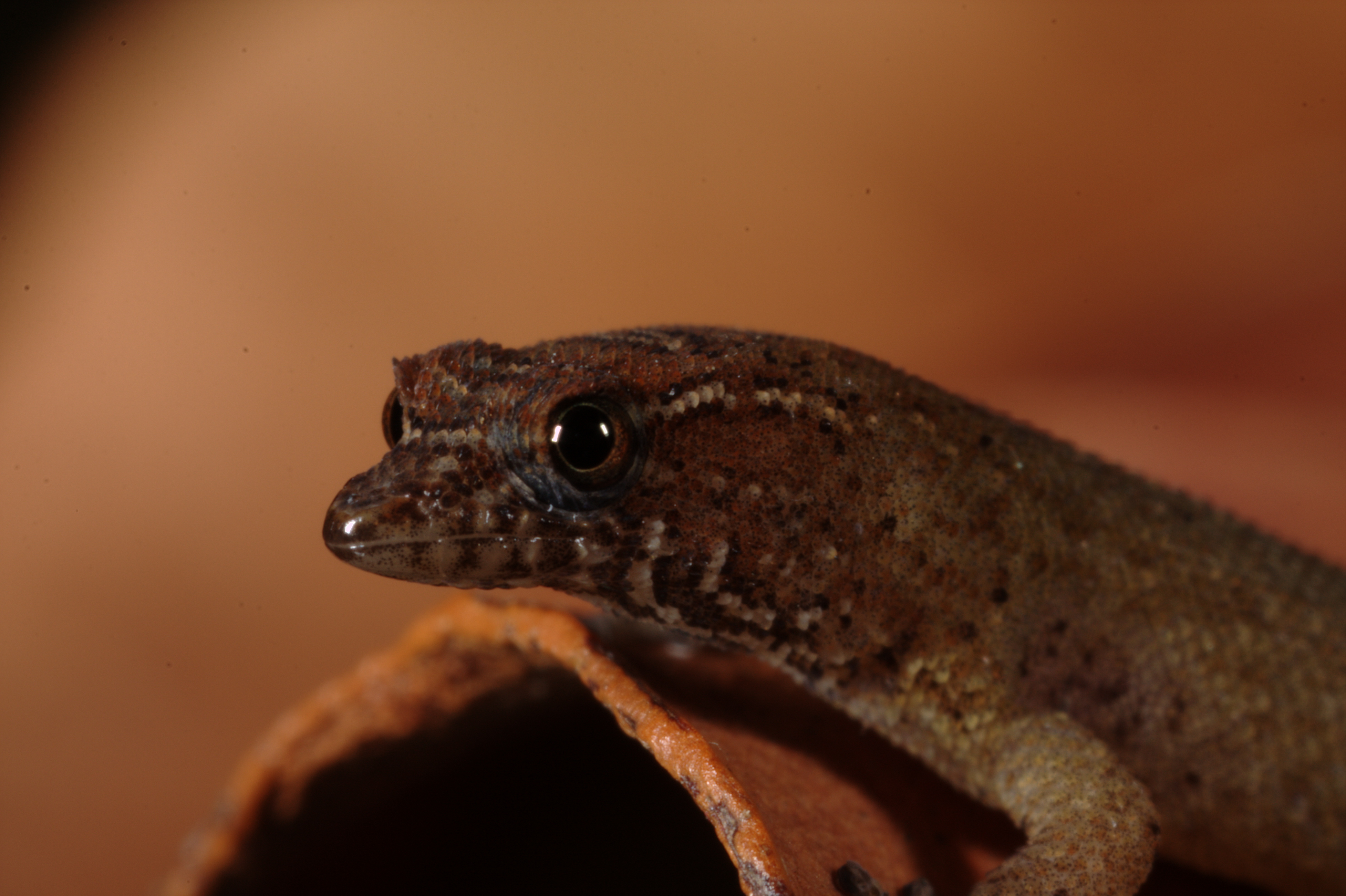 성적 이색성은 없지만, 암컷이 수컷보다 다소 커서 암컷의 평균 SVL은 18mm, 수컷은 16mm 정도다. 주둥이는 평범하고 뭉툭하며, 꼬리는 끊어지면 다시 재생한다.
