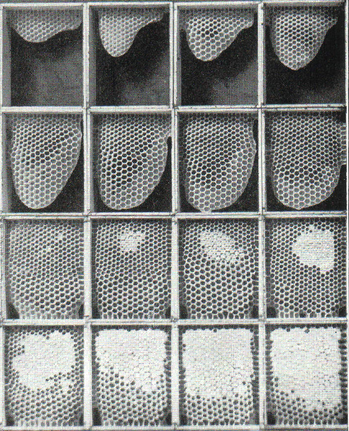 - 개별 벌들의 협력: D'Arcy Wentworth Thompson은 벌들이 세포를 함께 놓는 과정에서 비눗방울 필름과 유사한 경계 모양이 자연스럽게 형성된다고 주장했다.