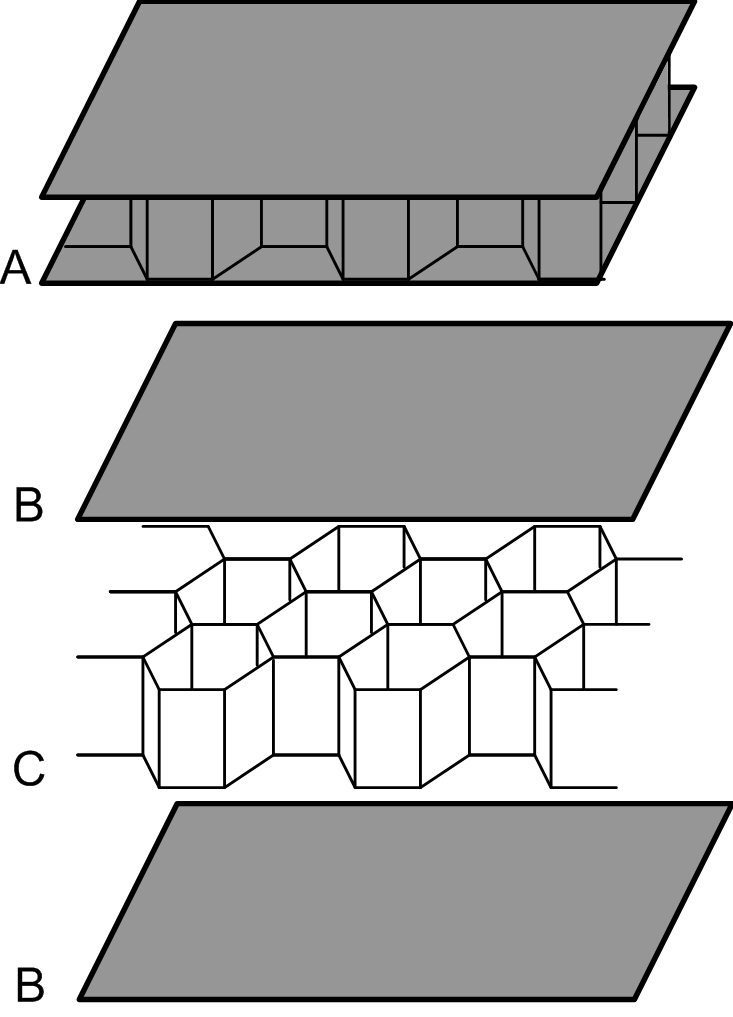 1914년 | R. 횔러와 S. 레니는 구조적 적용을 위한 벌집 구조의 최초 사용에 대한 특허를 받는다.[14] |
