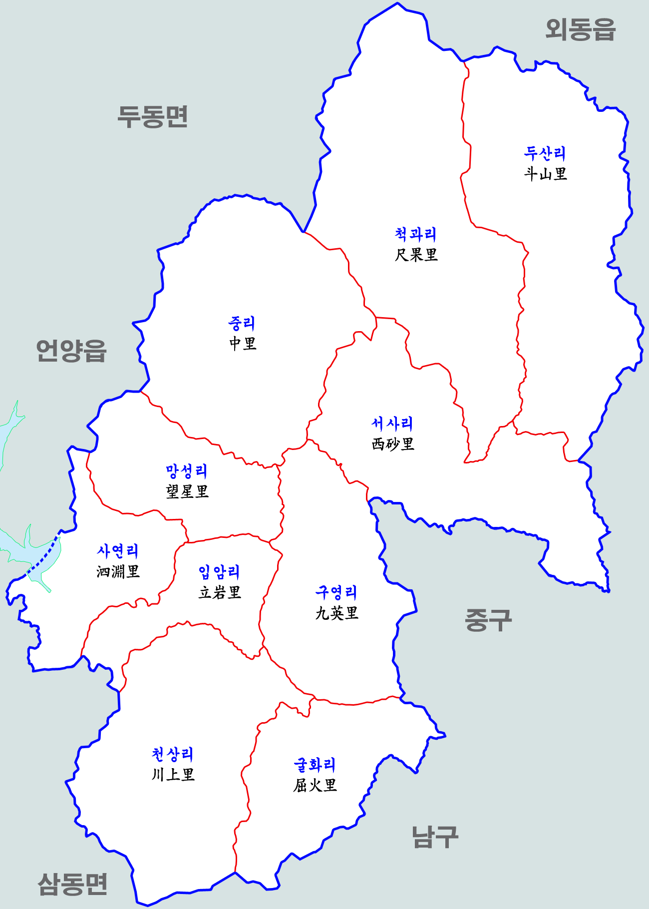 중리동(中里洞), 내사동 일부 | 중리(中里) |