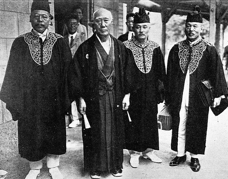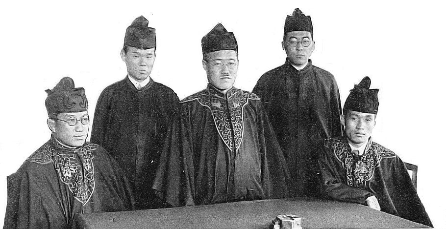 일제강점기에는 일본식 법복이 도입되었다. 1890년(메이지 23년) 2월 10일에 제정된 재판소구성법[34]에서는 공개 법정에서 판사, 검사 및 재판소 서기는 제복을(동법 제3편 사법사무의 취급 제1장 개정 제114조 제1항[34]), 변호사는 직복을(동조 제2항) 착용하는 것을 규정하였다. 초기 법정에서는 판사와 검사의 복장이 제각각이어서 “매우 보기 흉하다”고 평가되기도 했다.[33] 그래서 야마다 아키요시는 유럽에서 사용하던 가운 형태의 법복을 본떠 일본에서도 법정에서 착용하는 제복을 도입할것을 제안하였다.