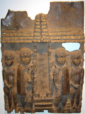 베냉 장식판을 포함한 베냉 미술은 13세기에 시작되었으며, 15세기와 16세기, 그리고 18세기와 19세기에 걸쳐 발전하였다.[18] 특히 에시기(1550년경)와 에레소옌(1735-1750) 치세는 베냉 금속 세공의 "황금기"로 여겨진다.[18]베냉 왕국의 오바 궁궐은 왕실 조상 제단이 제작되었고, 정교한 궁정 의례가 행해진 장소였다.[19] 궁궐은 수백 개의 놋쇠 판으로 장식되어 있었는데, 여기에는 궁정 인물과 사건들이 묘사되어 있었다.[19]