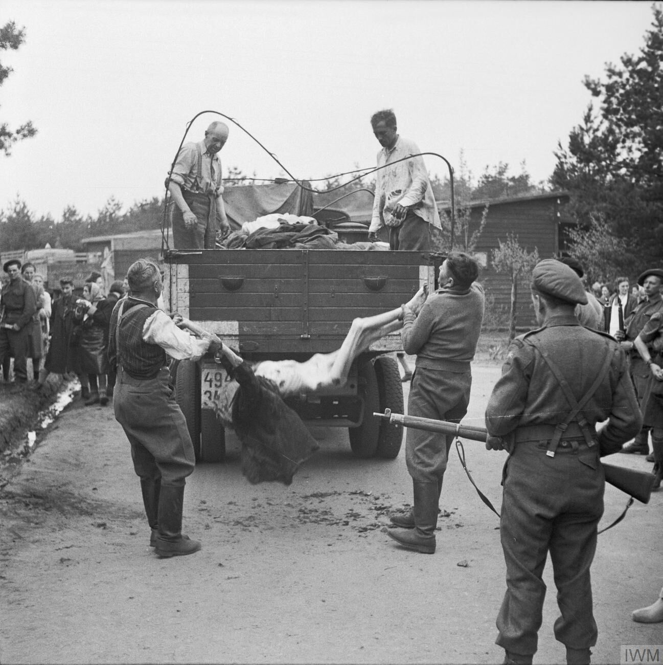 영국군은 전직 SS 수용소 직원들에게 수천 구의 시체를 집단 매장하도록 강제했다.[25] 이들에게는 굶주림에 시달리는 식량 배급이 주어졌고, 장갑이나 기타 보호복을 사용할 수 없었으며, 계속해서 고함을 지르고 위협을 받아 작업을 멈추지 않도록 강요받았다. 일부 시체는 부패가 심하여 팔다리가 몸통에서 떨어져 나갔다.[26] 두 달 만에 보호 장비 없이 시체를 취급하도록 강요받은 직원 17명이 발진티푸스로 사망했다. 또 다른 한 명은 자살했고, 다른 세 명은 탈출을 시도하다 영국군에게 총에 맞아 사망했다.[27]