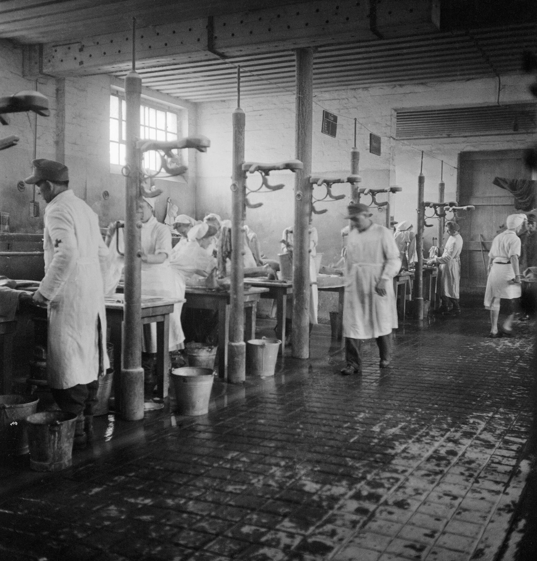 - 군대 배급품의 소고기 통조림. 대부분의 수감자들의 소화 시스템은 장기간의 기아로 인해 너무 약해져서 이러한 음식을 소화할 수 없었다.