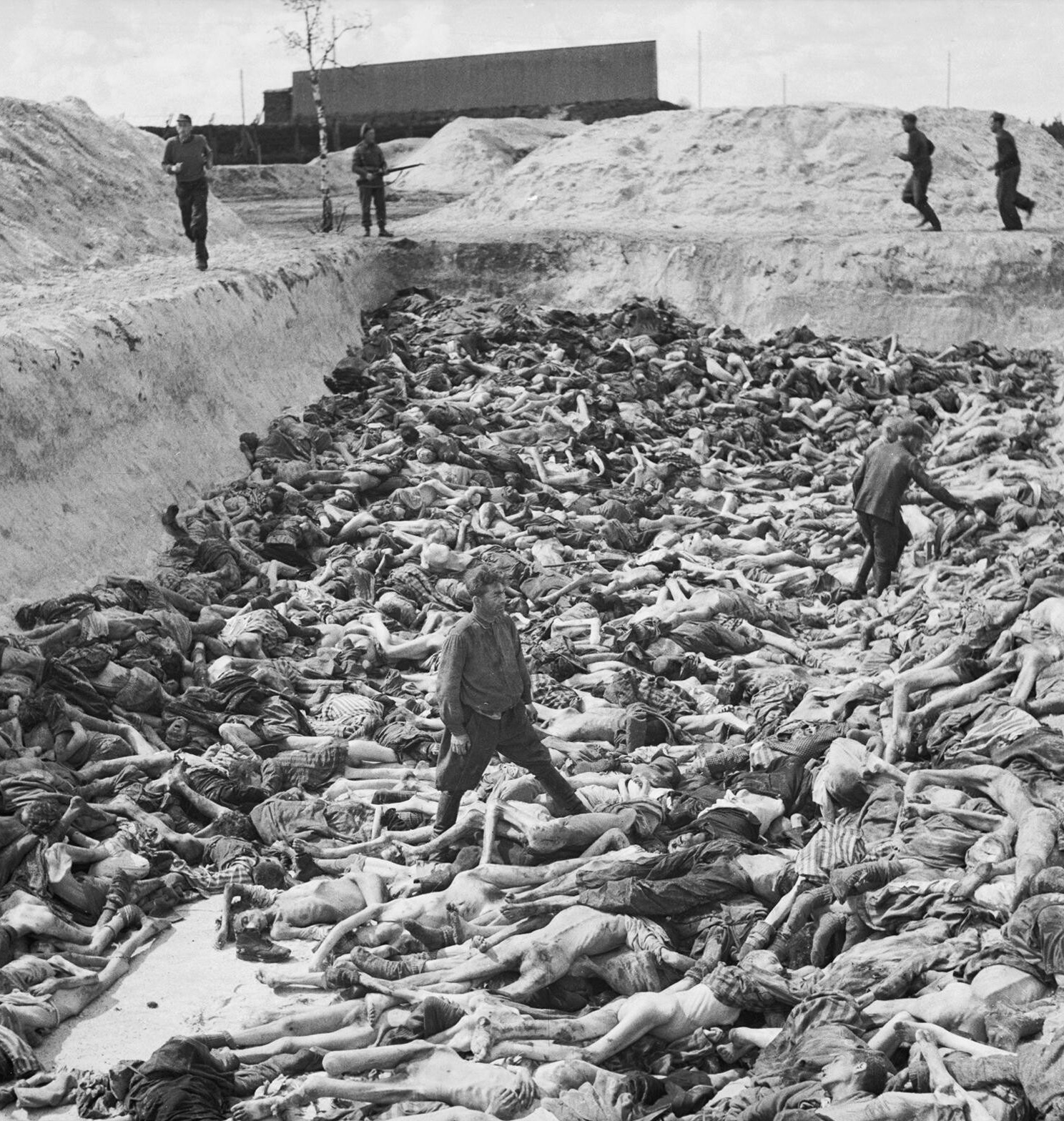 1945년 4월 1일에는 시체 소각로가 멈췄다. 매일 발생하는 엄청난 수의 시체를 처리할 능력을 넘어섰기 때문이다. 대신 구덩이가 계속 파졌고, 건강한 수용자들이 수용소 내에 널린 시체를 모아 구덩이까지 운반했다.[80]