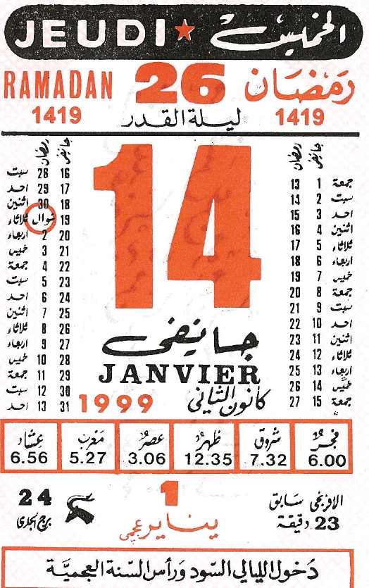 | 9 | 라마단 | sh-shaher n uzum "금식의 달" (제르바) |