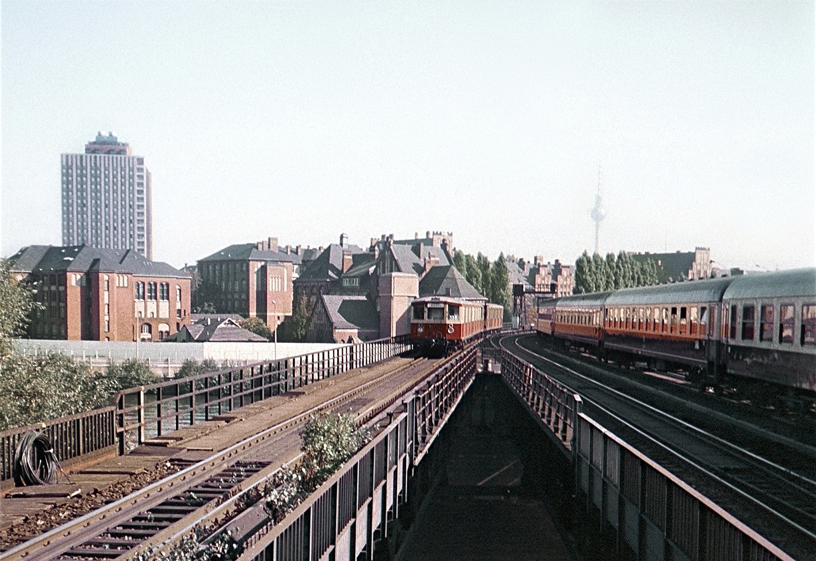 알렉산더플라츠 근처에 있었던 중앙 시장(Zentralmarkthallede)으로 화물을 운송하기 위해 하루 총 7편성의 특별 화물 열차가 운행되었다. 이 중 4편성은 야간에, 2편성은 주간에, 1편성은 저녁에 운행했다. 이를 제외하면 도심선 상에서는 정규 화물열차가 운행하지 않았다. 일반적인 화물 운송은 베를린 순환선 상에 위치한 샤를로텐부르크, 모아비트, 베딩, 바이센제, 중앙가축시장, 프랑크푸르터 알레, 노이쾰른(당시 릭스도르프), 템펠호프, 빌머스도르프-프리데나우, 할렌제 등의 화물역을 통해 이루어졌다.5. 3. 장거리 열차