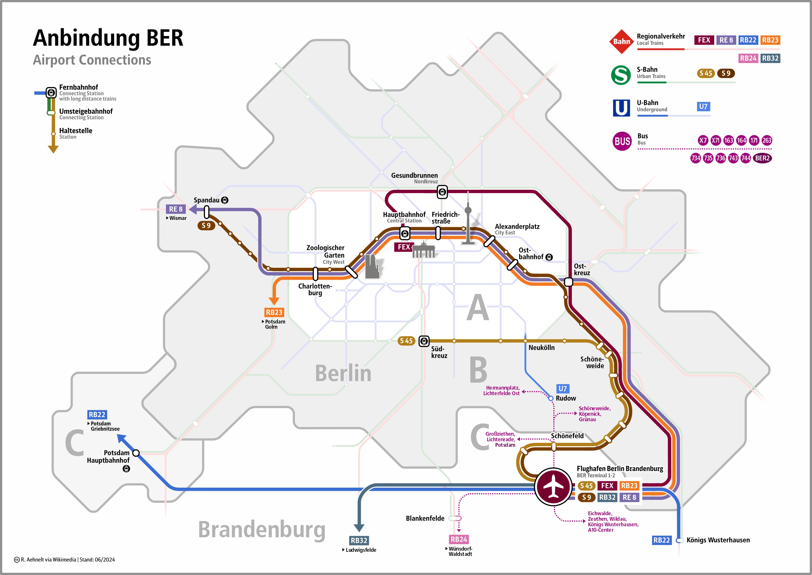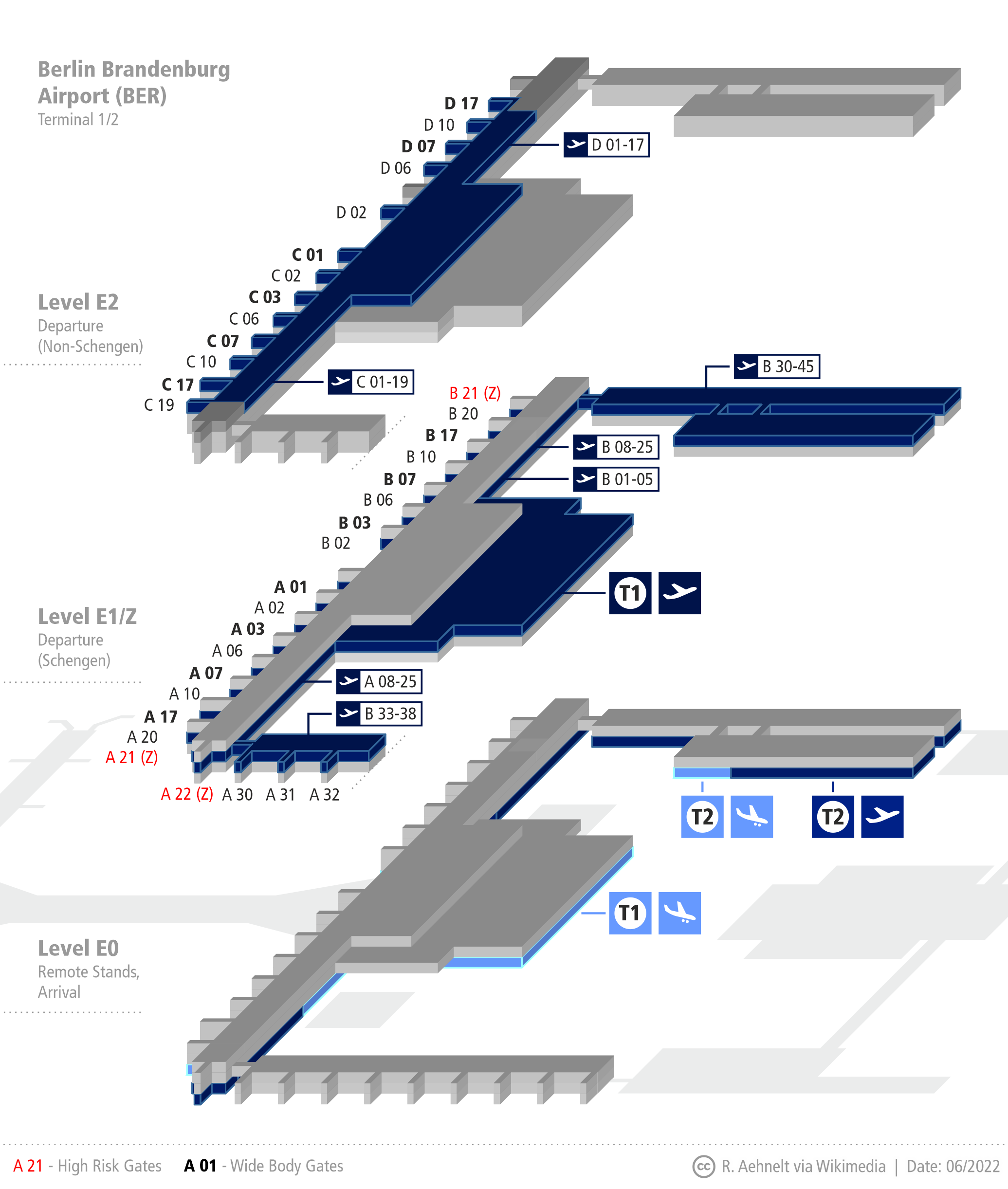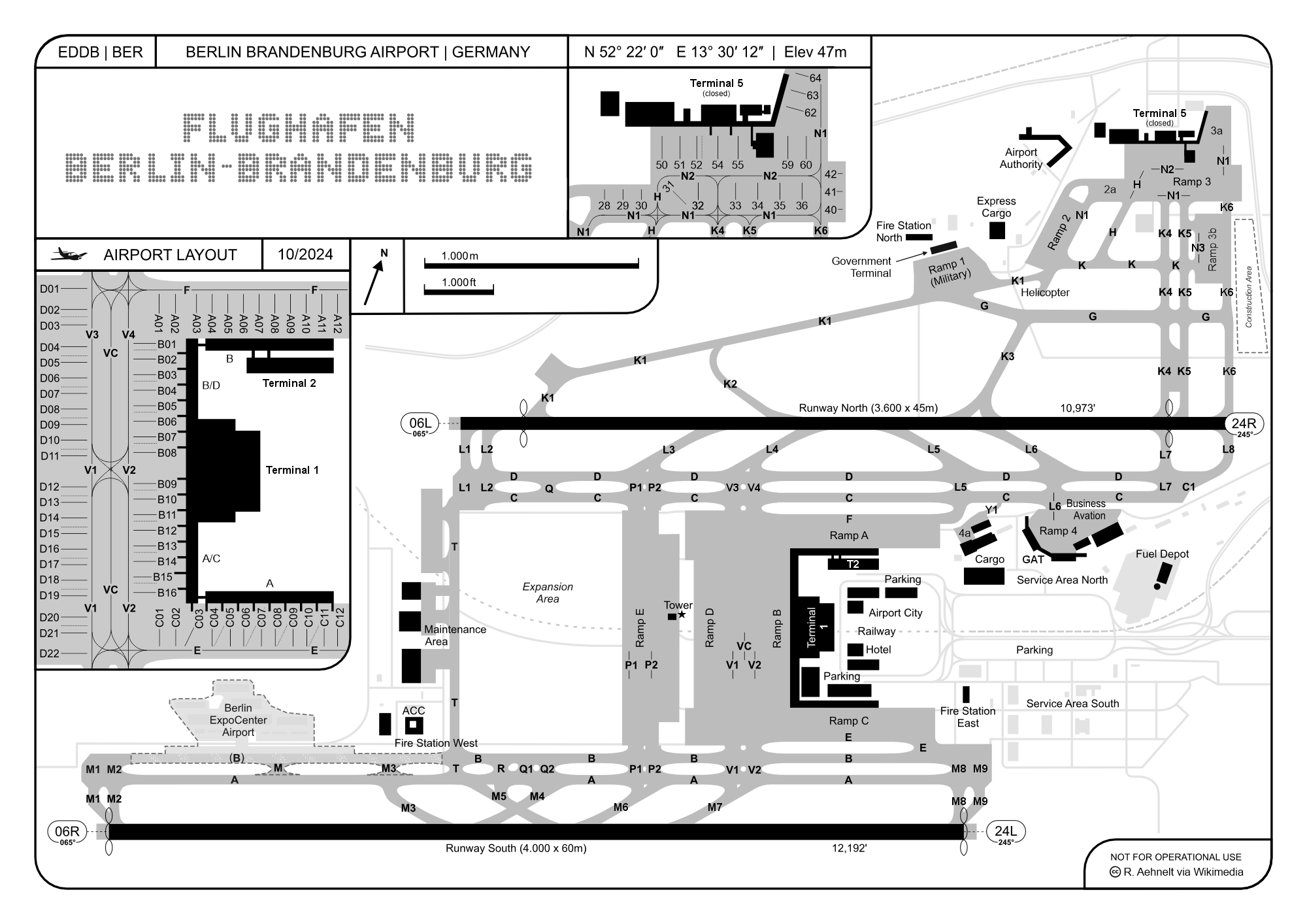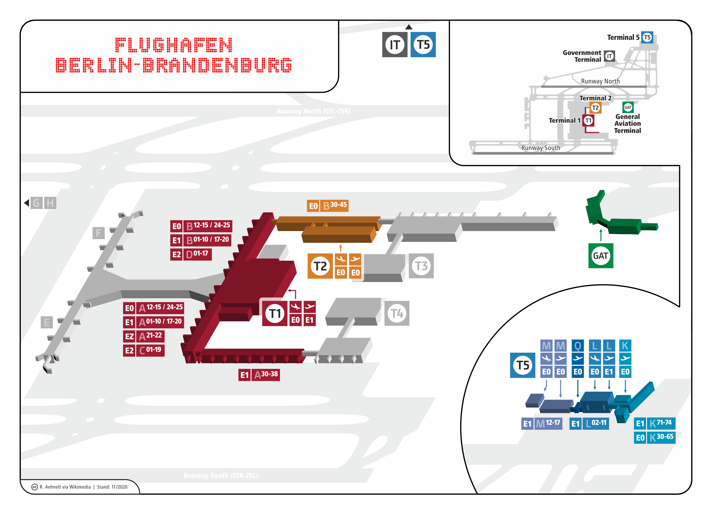 2020년 10월 25일, 기존 쇠네펠트 공항의 IATA 코드 SXF가 BER로 대체되었고, 쇠네펠트 공항은 BER 터미널 5로 개칭되었다.[10] 2020년 11월 8일 테겔 공항이 폐쇄되면서, 테겔 공항의 IATA 코드 TXL도 폐지될 예정이다.[635]