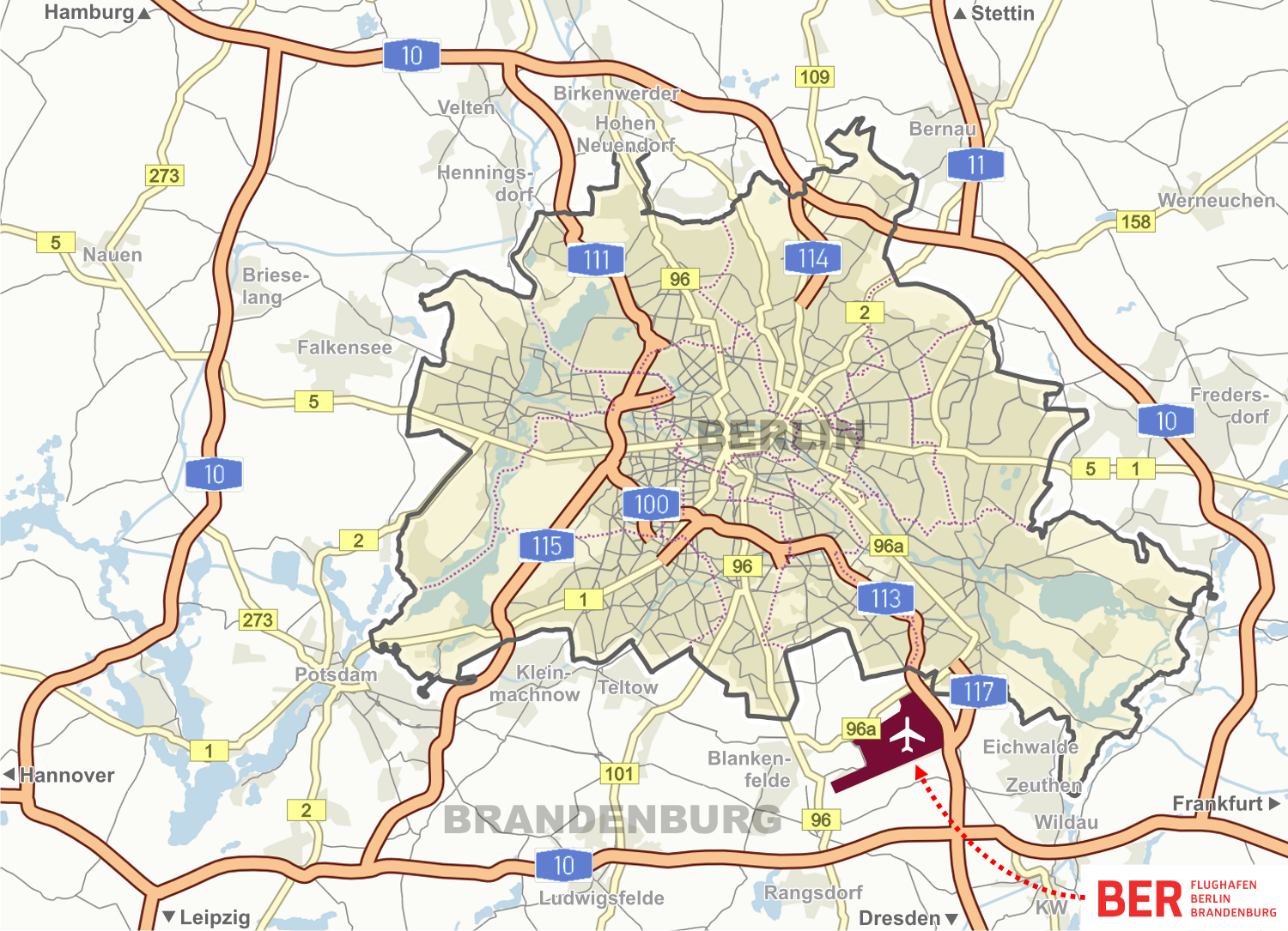 베를린 브란덴부르크 공항은 기존 쇠네펠트 공항의 남쪽에 부지를 확보하여 건설했다.