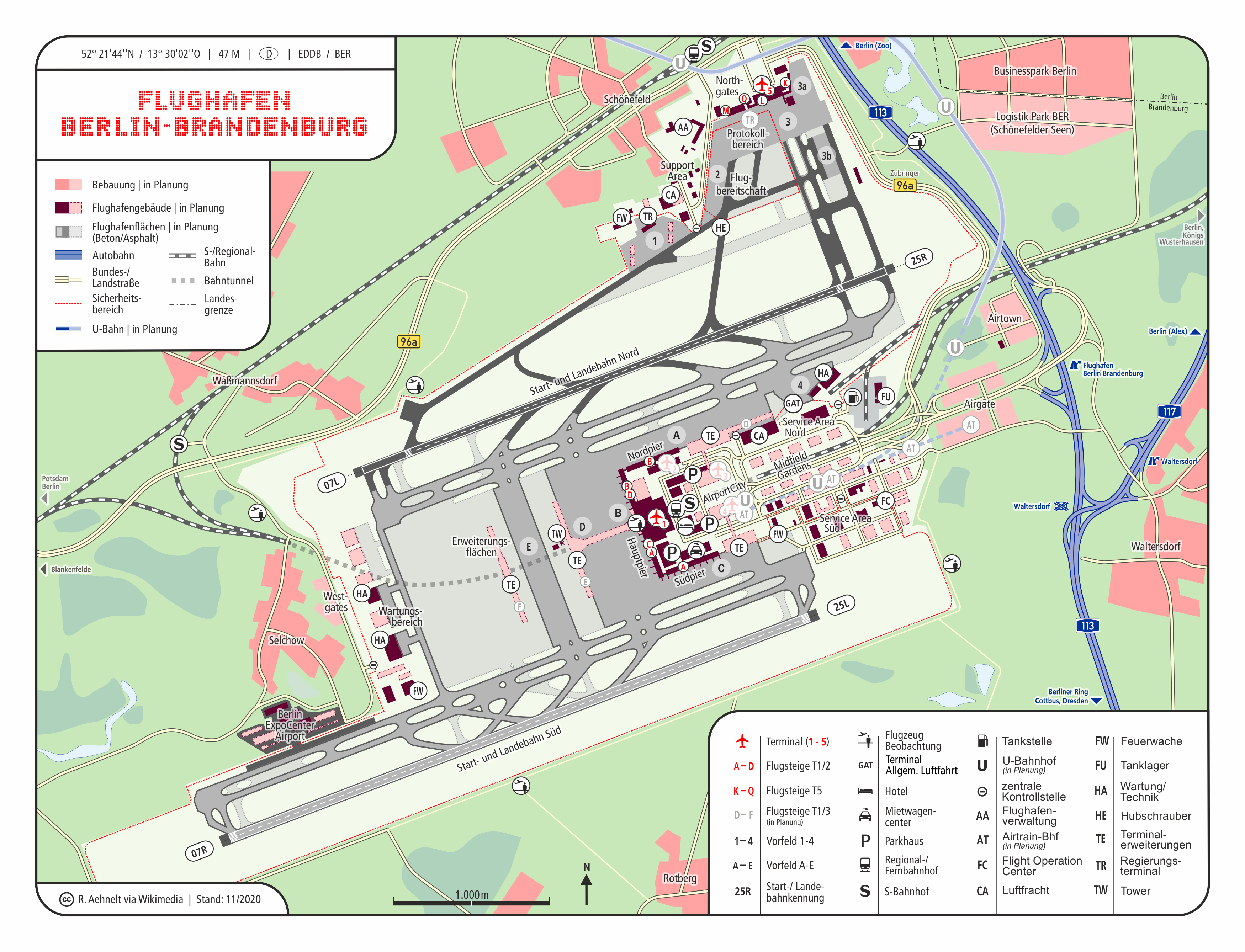1996년 합의를 실천하기 위하여 2004년 8월 13일 브란덴부르크 주 사회기반시설 및 토지계획부에서 개발 계획을 발표했고[599] 2009년 10월 20일에는 소음공해 방지 계획을 발표했다. 개발 계획에 의하면 기존의 베를린 템펠호프 공항과 베를린 테겔 공항이 폐항하기로 예정되어 있다.[599][600]