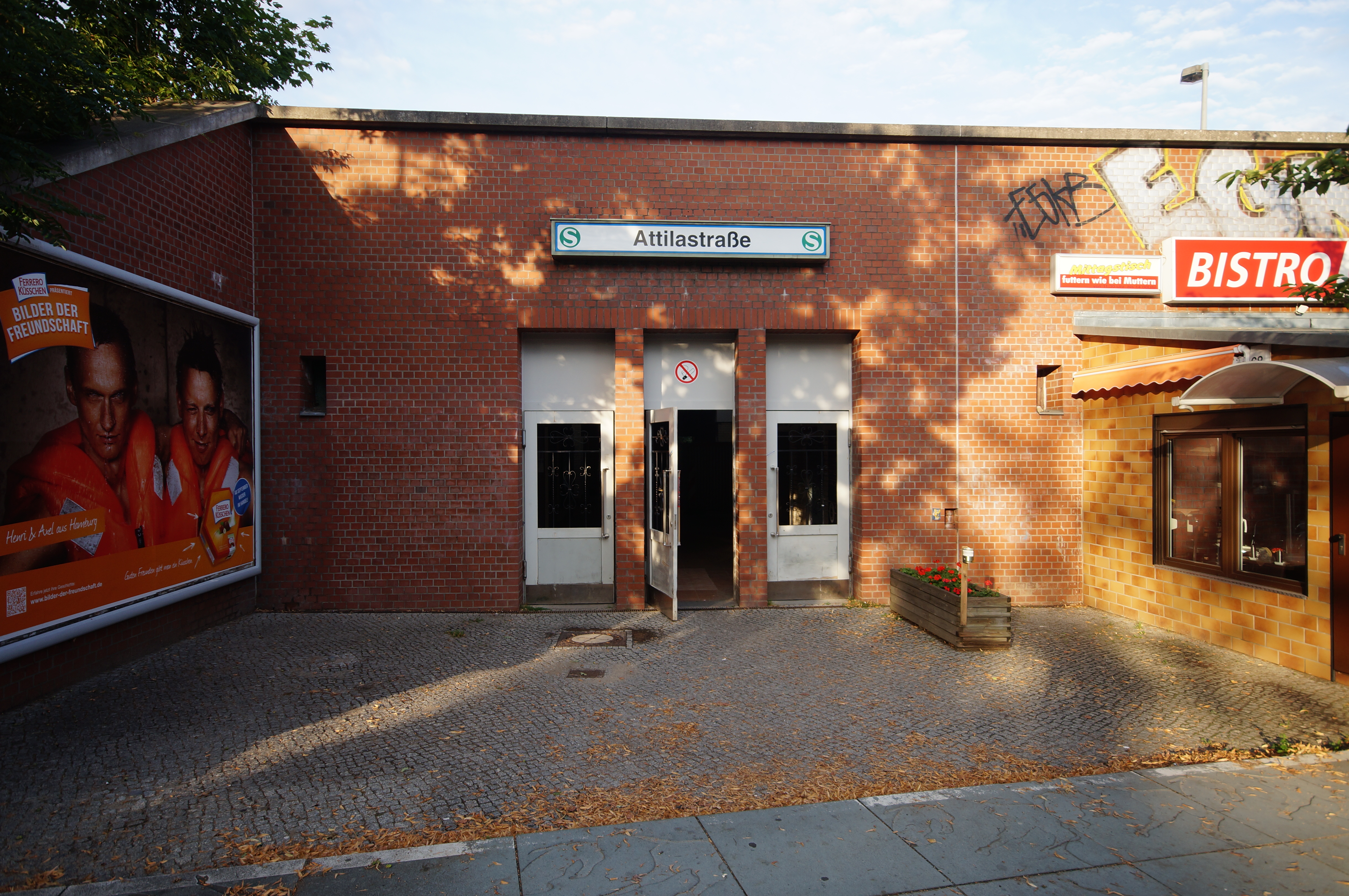 베를린 아틸라슈트라세역은 독일 베를린 템펠호프-쇠네베르크구에 있는 S반 철도역이다. 1875년 쥐트엔데 B. D.역으로 개통하여 베를린-드레스덴선과 랑크비츠-템펠호프 대로의 교차점에 위치하며, 1910년부터 1914년까지 선로 고가화 공사를 거쳐 현재의 모습을 갖추었다. 1939년 근교선 전철화, 제2차 세계 대전 중 철교 파괴 및 복구, 2014년 엘리베이터 설치 등 역사의 변화를 겪었다. 현재 S반 S2 노선이 운행하며, 베를린 버스 노선과 환승 가능하다.