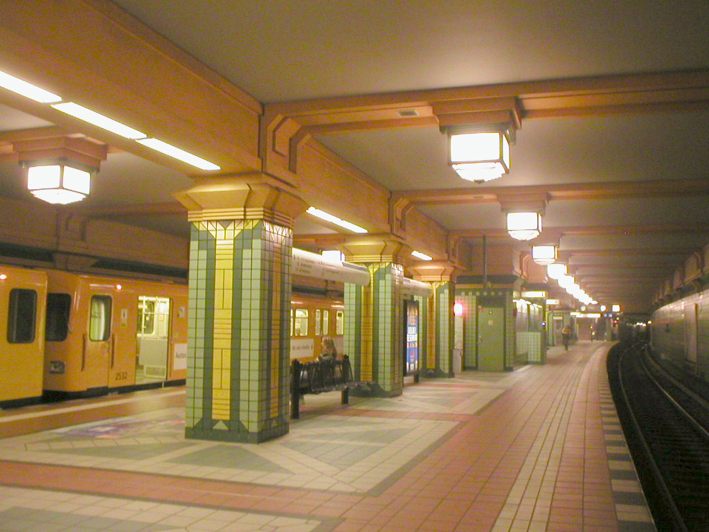 마침내, 1996년 7월 13일, 168번째 베를린 U-Bahn역이 개통되었다. 여기에서도 라이너 륌러가 역의 디자인을 담당했는데, 이는 우연히도 마지막이었다. 그는 이전 노선 구간의 역을 매우 강력하게 참조하여 청록색 타일로 마감된 매우 간결한 역을 설계했다. 역사적인 대피소 표지판이 보이도록 타일 대신 유리를 사용했다.