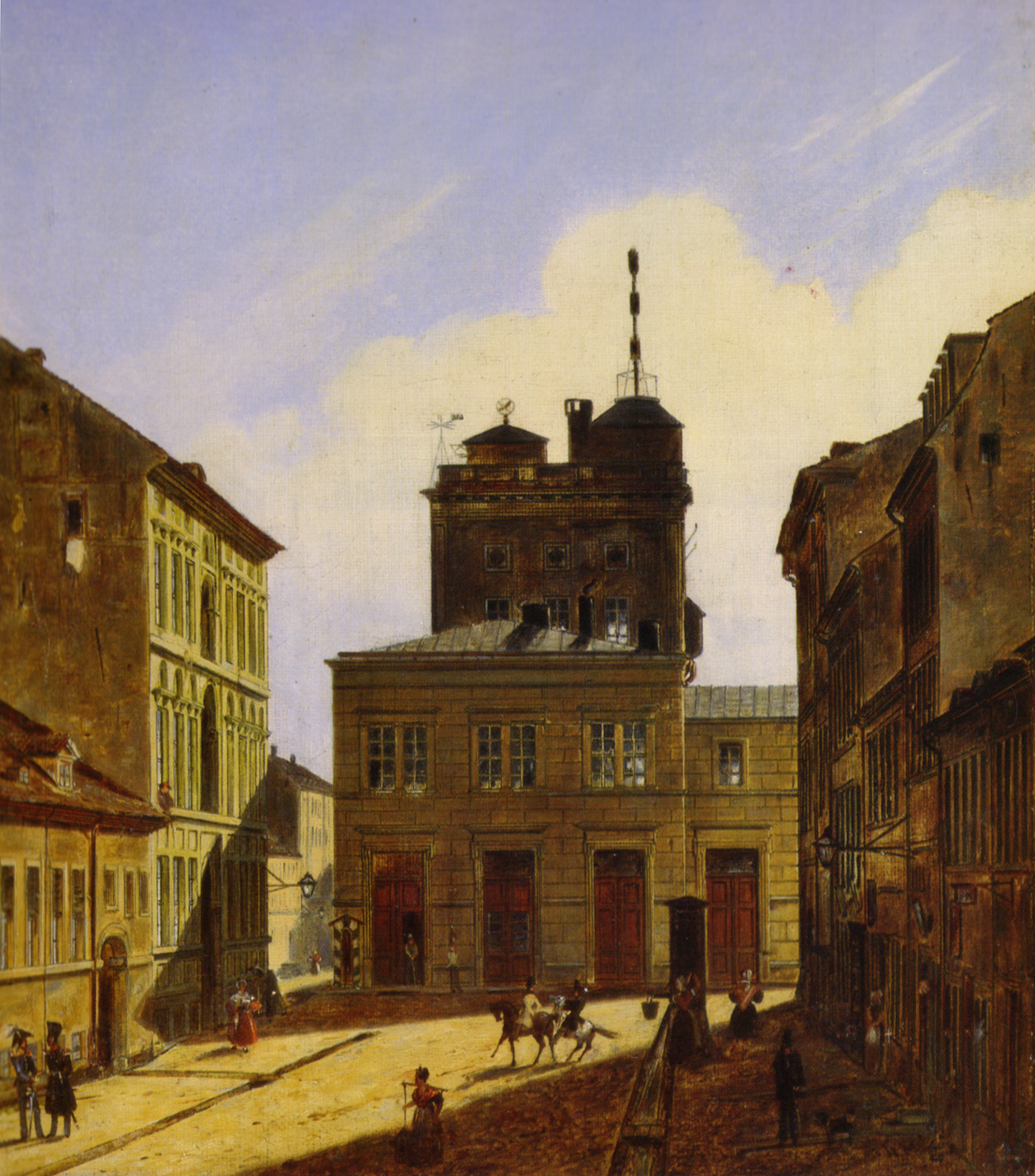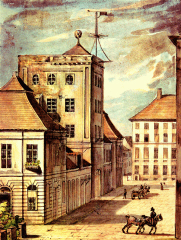 1699년 9월, 독일 연방은 교황 그레고리오 13세가 1582년 도입한 그레고리력을 받아들이지 않고, 프로테스탄트 독일 국가에 "개선된 달력"을 도입하기로 결정했다. '개선된 달력'은 이듬해 도입되었고, 1700년 2월 18일 다음 날이 3월 1일이 되었다. 1700년 5월 10일, 선제후 프리드리히 3세는 계획된 베를린 천문대에 달력 특허를 부여했고, 8일 후 고트프리트 키르히를 천문대장으로 임명했다. 7월 11일(그의 43번째 생일) 선제후는 베를린에 학술원과 천문대를 공식적으로 설립하는 문서에 서명했다. 따라서 베를린은 런던, 파리, 로마에 이미 있던 프로이센 과학 아카데미(원래 독일어 명칭: ″Kurfürstlich-Brandenburgische Societät der Wissenschaften″)와 같은 아카데미를 갖게 되었으며, 이는 고트프리트 빌헬름 라이프니츠의 계획에 기초했다. 라이프니츠는 아카데미의 초대 회장이 되었다. 달력 특허로 인한 수수료는 오랫동안 이 기관의 거의 유일한 재정적 기반이 되었다. 이 학회는 원래 자체 천문대가 없었고, 키르히는 1705년부터 Cölln의 Wallstrasse에 있는 게하임라트 베른하르트 프리드리히 폰 크로지크의 개인 천문대를 포함하여 다양한 개인 천문대에서 관측을 수행했다. 키르히는 그의 아내 마리아 마르가레테와 아들 크리스트프리트의 도움을 받았다. 마리아 마르가레테는 1702년 혜성을 발견했다. 그동안 선제후는 1701년 프로이센의 왕의 지위로 승격되었다. 1710년 1월 1일, 수도는 이전에 독립된 도시였던 도르테엔슈타트, 프리드리히슈타트, 프리드리히베르더, 쾰른과 베를린(가장 오래된 도시)을 통합하여 확장되었다.2. 2. 구 베를린 천문대 (1711년 ~ 1835년)